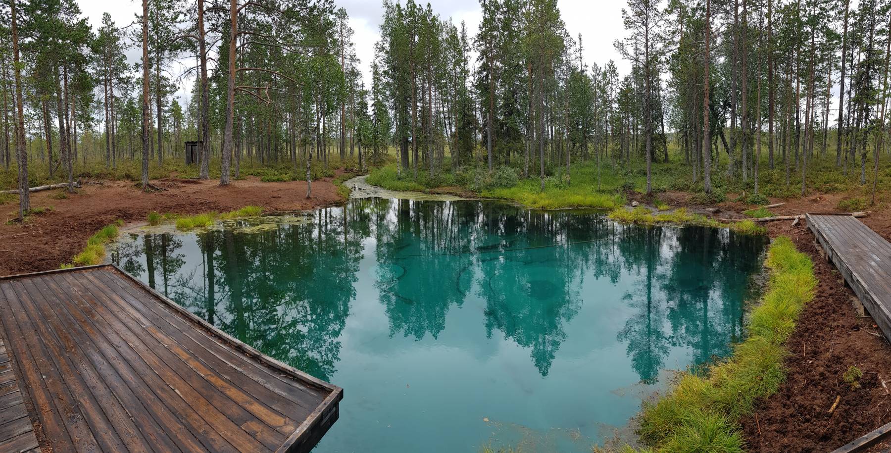 Natur, Natur. Einen Abstecher zur Froschquelle. Sie ist eine ungewöhnlich große kalte Quelle und eine sogenannte artesische oder kochende Quelle, bei der das Wasser einen sehr hohen Druck hat. Das Auffälligste an der Quelle ist jedoch die eigentümliche türkise Farbe, die sich stark vom umgebenden Moor abhebt.