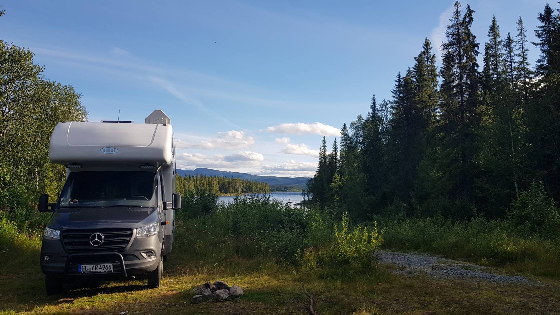Wir kommen in diesen Tagen nicht nur an wunderschöner Natur mit eindrucksvoller Landschaft und sehr schönen Stromschnellen und Wasserfällen vorbei. Wir finden auch beste einsam gelegene Stellplätze an Seen. Glücklicherweise haben wir uns in Östersund noch bei unserem neuen Lieblingsladen Lidl eingedeckt.
