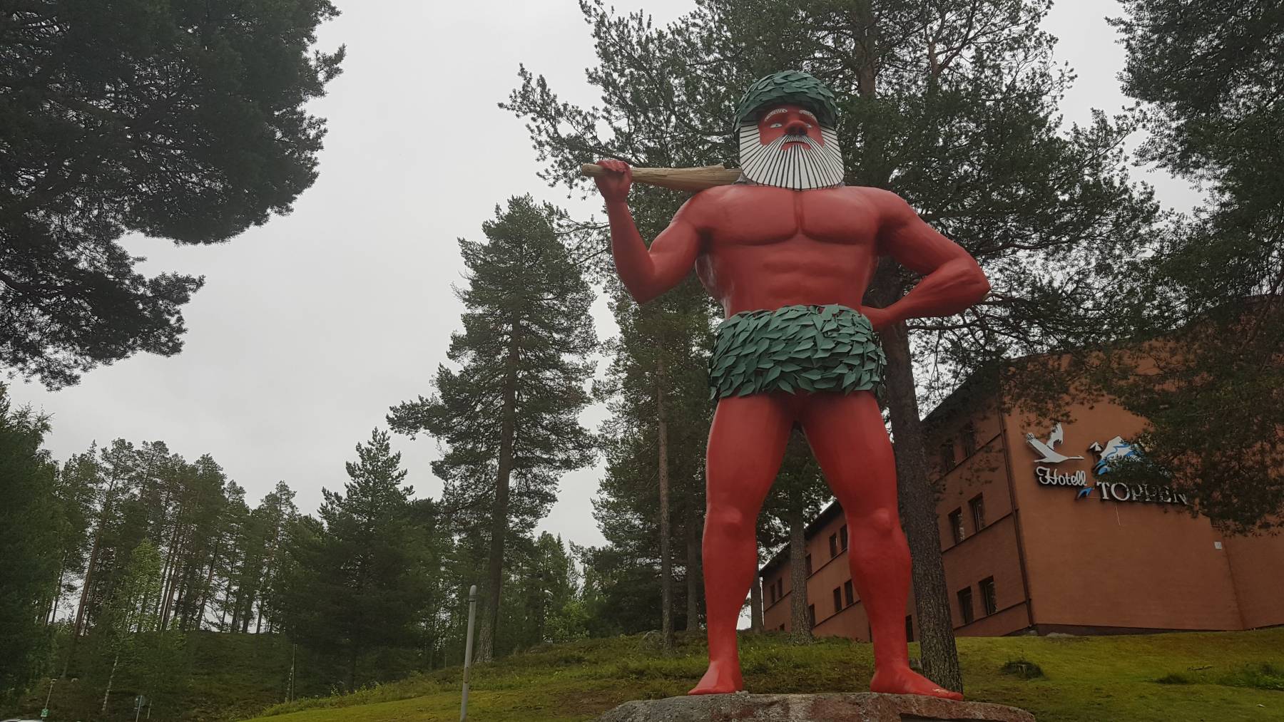 Zum einen den Wilding. Der Vildmannen gehört zur heidnischen Tradition, er galt als Dämon. Als Wappen Lapplands findet man ihn erstmals, mit Keule auf der Schulter, auf Münzen aus dem 17. Jahrhundert .