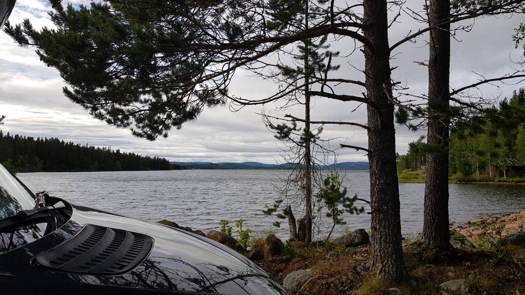 Wir befinden uns auf dem Vildmarksvägen, einer sehr schönen Landschaftsroute mit einer der höchst gelegenen Straßen Schwedens – der nächste Shop liegt von hier aus über 4oo km vor uns oder halt 60 km zurück. Wir entscheiden uns die Tour weiter zu fahren. In der Ruhe liegt die Kraft…