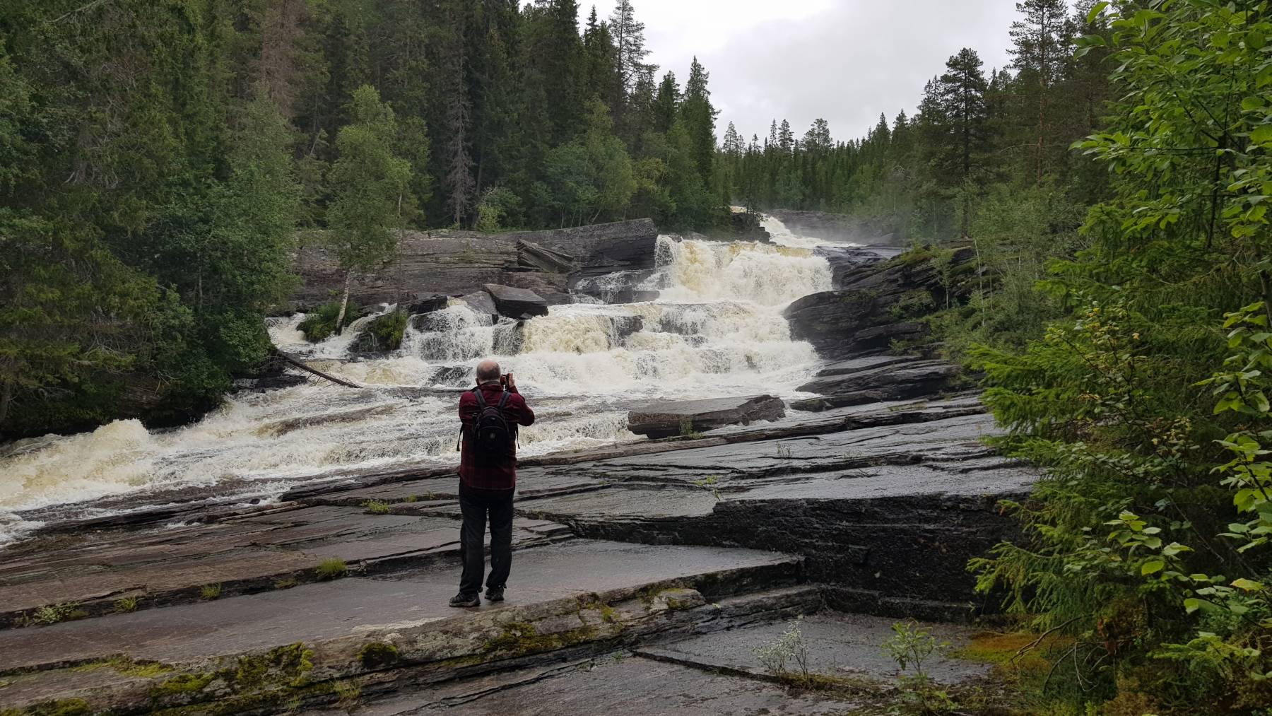 Aber der glitschige Weg hat sich gelohnt, einer der schönsten Wasserfälle Schwedens