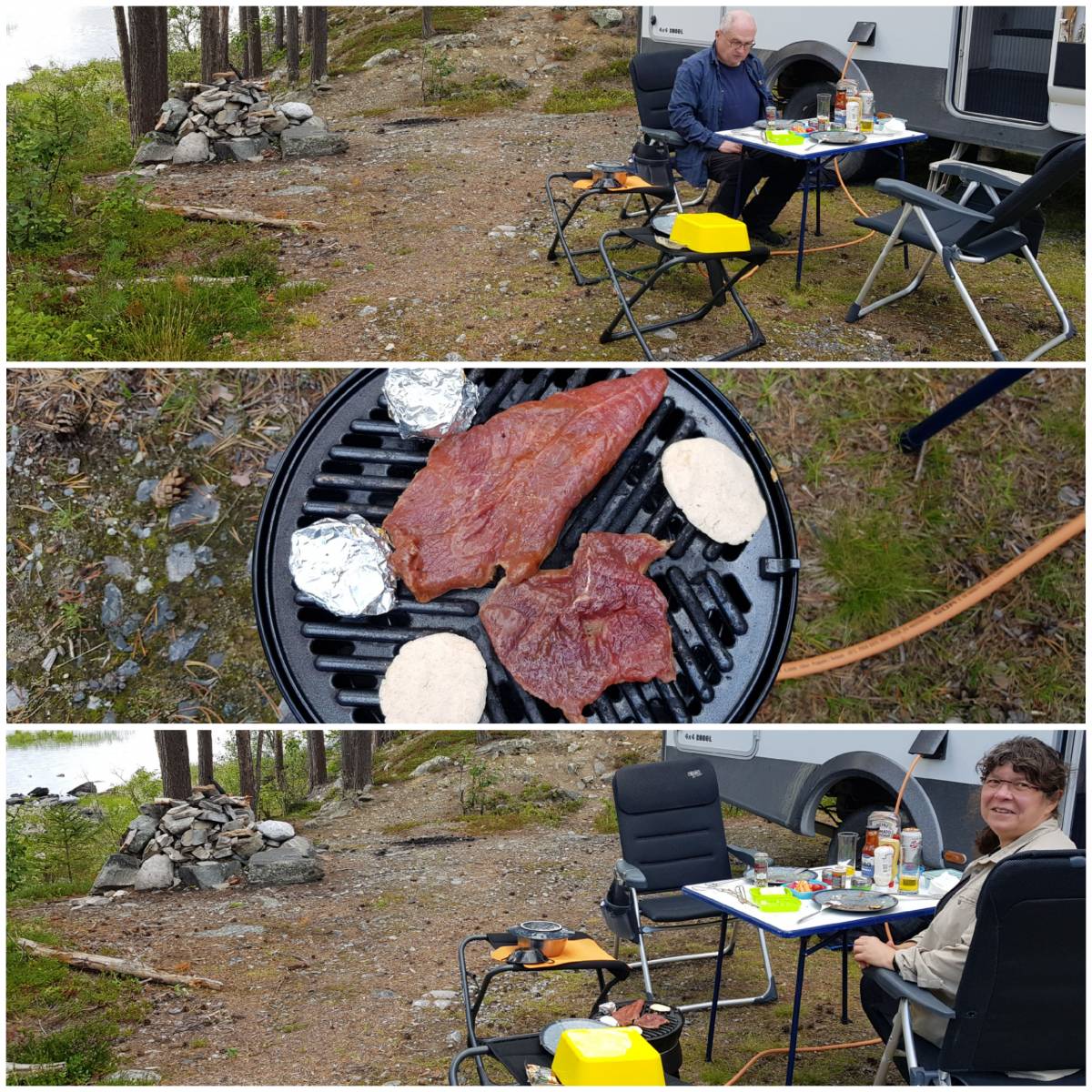 Wir kommen in diesen Tagen nicht nur an wunderschöner Natur mit eindrucksvoller Landschaft und sehr schönen Stromschnellen und Wasserfällen vorbei. Wir finden auch beste einsam gelegene Stellplätze an Seen. Glücklicherweise haben wir uns in Östersund noch bei unserem neuen Lieblingsladen Lidl eingedeckt.