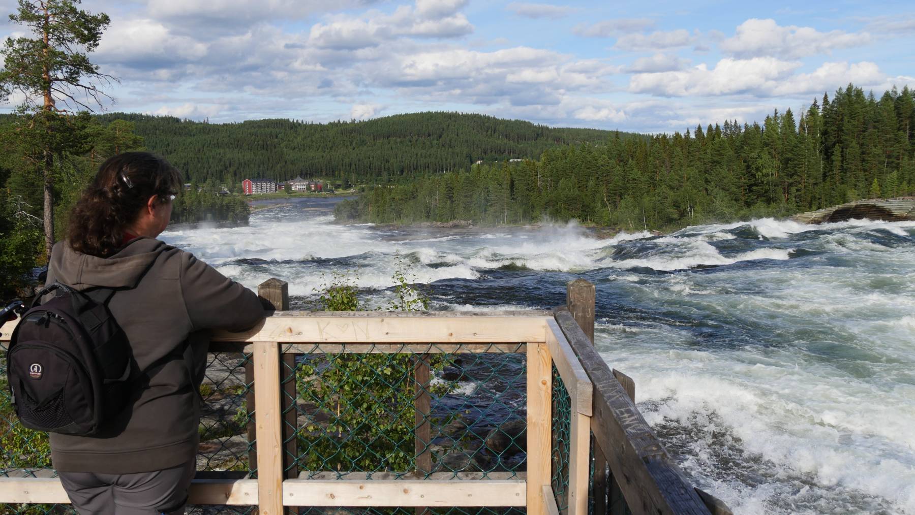 Über den Polarkreis bei Jokkmokk steuern wir zu den mächtigsten Stromschnellen Europas, den Storforsen.