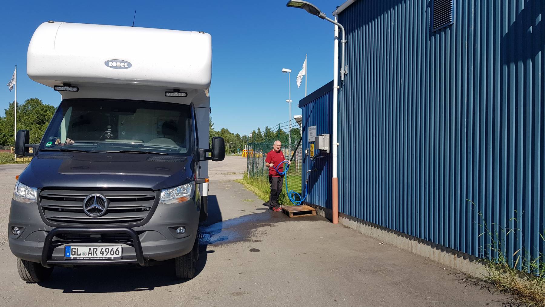 Nach mehreren Tagen „Stillstand“ kommen wiederkehrende Pflichtaufgaben auf uns zu : Ver- und entsorgen etc.. Das bedeutet direkt am Stellplatz Müll entsorgen, ein paar Kilometer weiter zur Mülltrennungsanlage für Papier-, Plastik-, Glas- und Metallmüll. Weiter zum Tanken für die im Moment üblichen € 2,50/Liter Diesel. Da sehen wir auch noch eine AdBlue Zapfstelle für rund € 1,–/Liter. Der Sprinter verbraucht nur 0,23l/100 km und wir hätten noch ein paar Tausend Kilometer fahren können, aber wir wollten mal nachtanken, bevor es eventuell im hohen Norden nicht mehr geht.