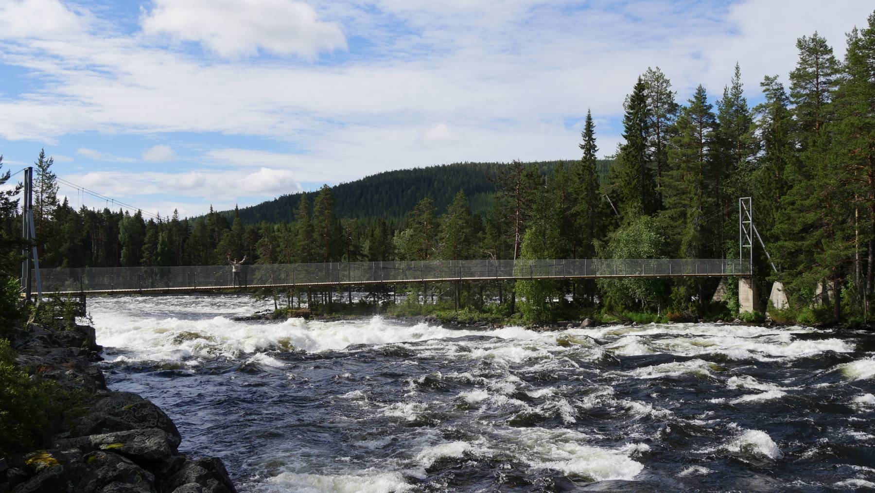 Man könnte meinen, dass wäre im Aquarium – halt hinter der Scheibe – ist aber in der Natur. Die Lachstreppen werden künstlich angelegt, damit die Lachse zu ihren Laichplätzen gelangen. Im Mai beginnen sie ihre Reise gegen den Strom zu ihren Geburtsorten, um selbst zu laichen. Bislang haben wir auf verschiedenen Lachstreppen in Norwegen, Schweden oder auch Neufundland noch keinen Lachs gesehen – unsere Premiere.
