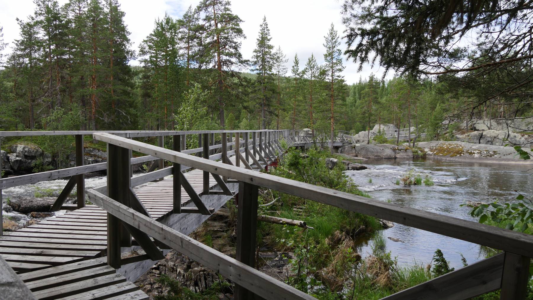 Man könnte meinen, dass wäre im Aquarium – halt hinter der Scheibe – ist aber in der Natur. Die Lachstreppen werden künstlich angelegt, damit die Lachse zu ihren Laichplätzen gelangen. Im Mai beginnen sie ihre Reise gegen den Strom zu ihren Geburtsorten, um selbst zu laichen. Bislang haben wir auf verschiedenen Lachstreppen in Norwegen, Schweden oder auch Neufundland noch keinen Lachs gesehen – unsere Premiere.