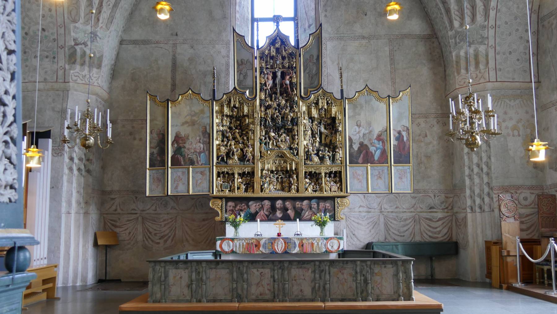 Der barocke Altarschrank mit unzähligen filigran geschnitzten Holzfiguren