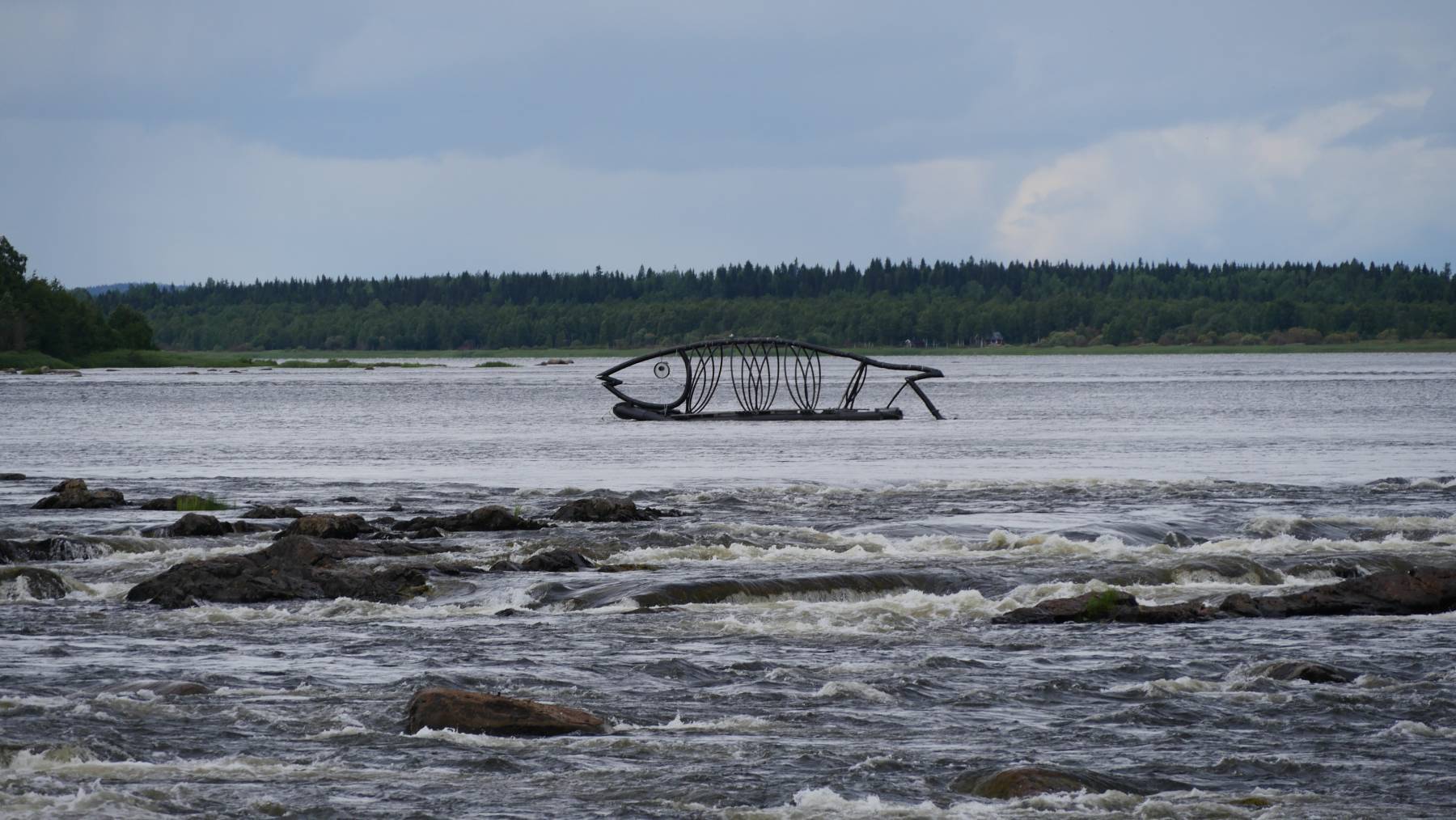 Jetzt geht es nordwärts entlang der Grenze und dem Grenzfluss Tornälv und nehmen uns ein paar Natursehenswürdigkeiten vor. Wir lernen eine Bifurkation kennen. Eine Bifurkation? Ja, eine Flussbifurkation und zwar die zweitgrößte der Welt. Und einfach gesagt ist es eine Querverbindung zwischen zwei parallel fließenden Flüssen. Ich habe das mal zu wikipedia verlinkt. Speziell im südlichen Finale kann man die verschiedenen Strömungen ganz gut beobachten. Der Polarkreis muss heute überquert werden. Kleinere Naturreservate und der Berg wo der Weihnachtsmann vermutlich wohnt stehen auch noch an.