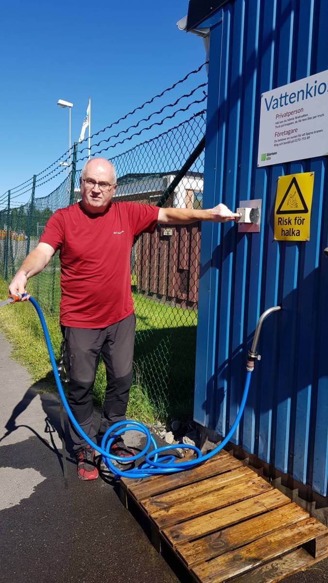 Nun sehen wir einen coop markt. Frische Sachen einkaufen muss auch wieder sein: Brot, Obst und Gemüse (sehr teuer). Wieder etwas weiter an der kostenlosen Wohnmobilentsorgungsstation können wir nicht nur entleeren und Wasser tanken, sondern verquatschen uns noch mit einer fünfköpfigen Familie aus Much, die auf dem Weg zum Nordkap ist. Sie ist auch noch in Bensberg geboren.