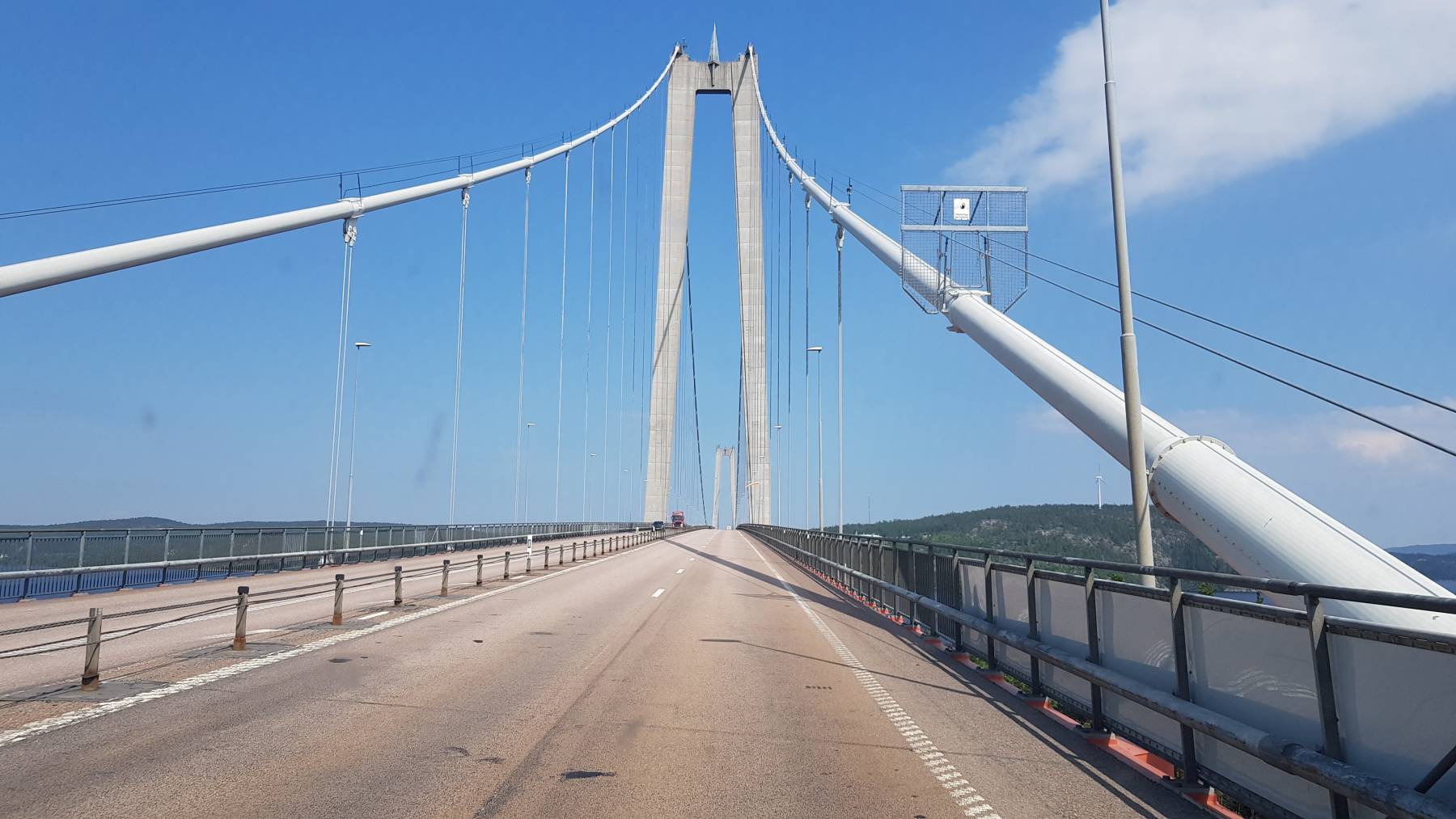 Nun sehen wir einen coop markt. Frische Sachen einkaufen muss auch wieder sein: Brot, Obst und Gemüse (sehr teuer). Wieder etwas weiter an der kostenlosen Wohnmobilentsorgungsstation können wir nicht nur entleeren und Wasser tanken, sondern verquatschen uns noch mit einer fünfköpfigen Familie aus Much, die auf dem Weg zum Nordkap ist. Sie ist auch noch in Bensberg geboren.