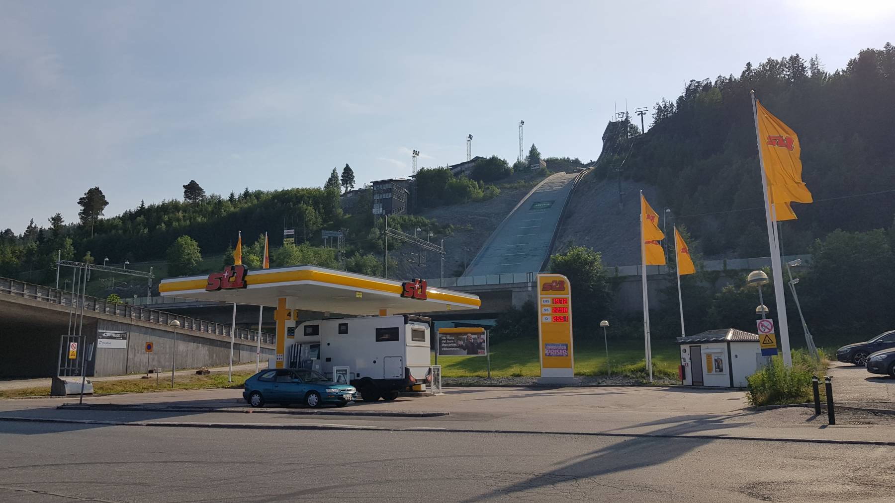 Dann noch schnell tanken unter der Sprungschanze in Ö...