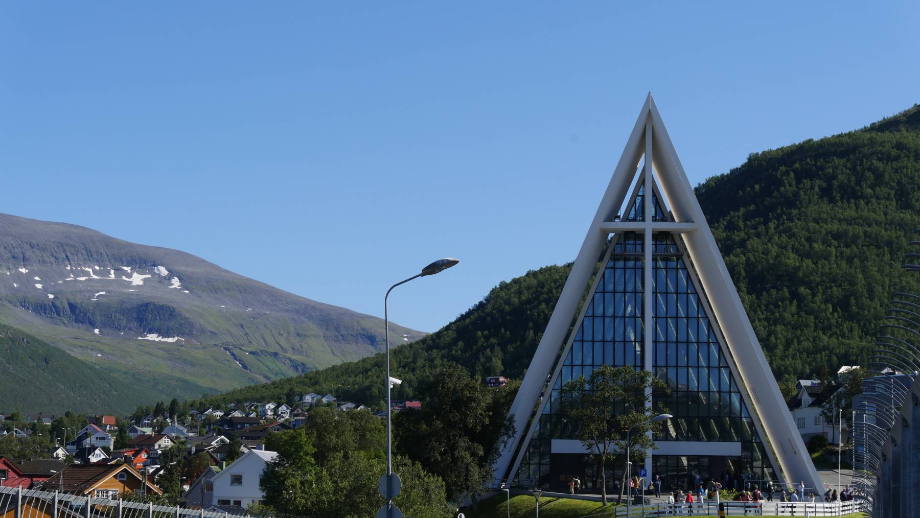 Wir erreichen Tromsø bei schönstem Sonnenschein und wollen zuerst mit der Seilbahn auf den Hausberg. So kann man die schöne Lage von Tromsø mit der Eismeerkathedrale am besten wahrnehmen. € 32 pro Person 😱. Das ist uns allen vieren zu teuer. Man könnte zu Fuss hoch, 418 m sind uns aber zu hoch. Da packt Fabian seine Drohne aus und wir erhalten noch schönere, individuelle Ausblicke. (siehe Video von Jessica am Ende dieses Beitrages)