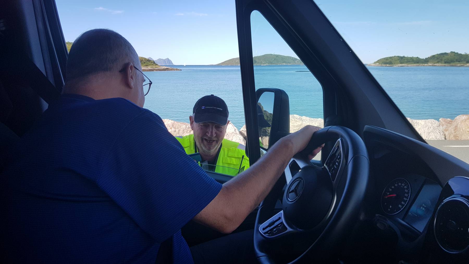 Am nächsten Morgen müssen wir früh raus. Die Fähre geht zwar erst um 10.15 Uhr, aber man soll früher da sein, da diese nur 25 Fahrzeuge aufnehmen kann. Die nächste Fähre geht 2 Stunden und dann wieder 5 Stunden später. Buchen ist nicht möglich. Vor uns stehen bereits 13 Wohnmobile und PKW, als wir um kurz nach 9 Uhr ankommen. Zu unserer großen Verwunderung zahlen wir das Gleiche wie Jessica und Fabian mit ihrem PKW, rund € 25,–. Beschrieben war es für das Doppelte. Glück gehabt.