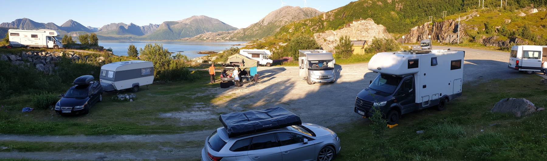 Unser Stellplatz in der Nähe der Fähre Richtung Senja - gut besucht