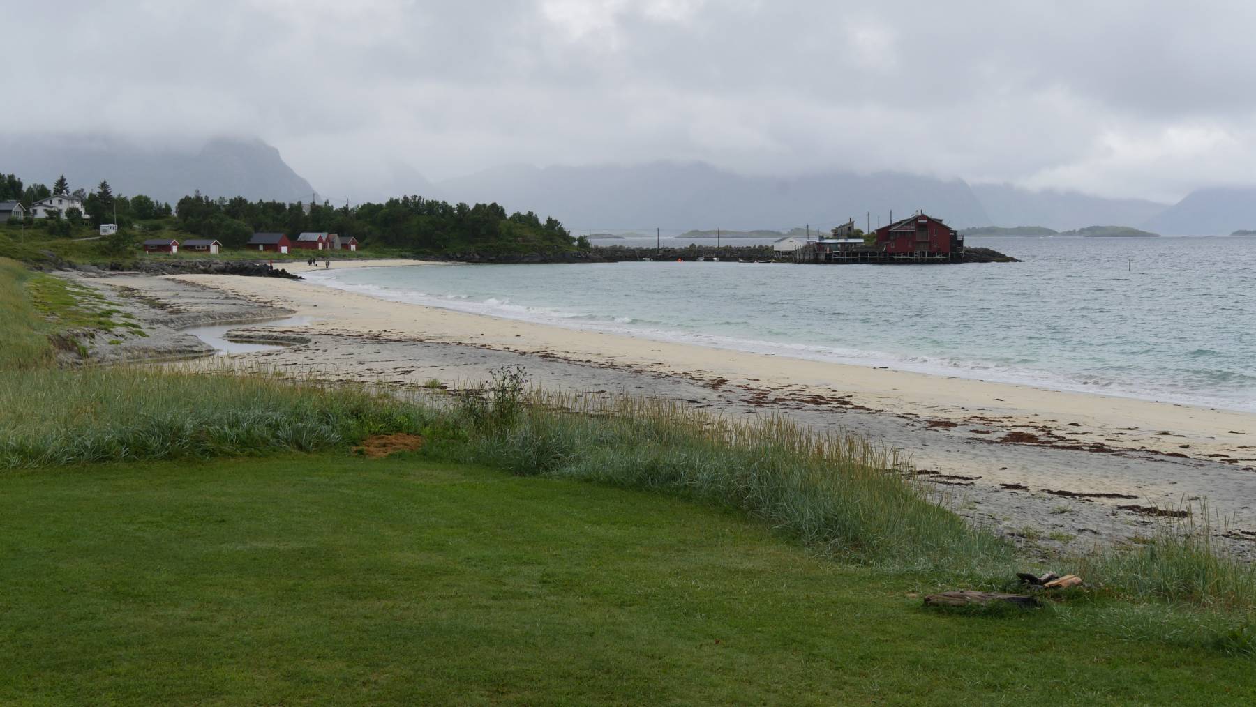 Husøy ist der erste Ort auf der Insel, der uns direkt positiv überrascht. Es gibt sogar einen Stellplatz unten im Hafen, für € 20/Nacht. Für einen einfachen Parkplatz finden wir das zu teuer und finden einen etwas seltsamen Platz für die Nacht, allerdings mit grandioser Aussicht. Wir stehen am Straßenrand, einer nicht stark befahrenen Straße, unmittelbar vor der Einfahrt zum Tunnel. Am kommenden Tag gehen wir 20 km entfernt, auf den Hesten mit Blick auf den Berg Segla. Eine sehr anstrengende Wanderung mit 430 Höhenmetern mit grandiosem Ausblick auf den Berg Segla und die Fjorde der Insel. Der Platz am Tunnel hat uns so gut gefallen, dass wir wieder zurück sind. Dieses Mal steigern wir unser „Camping am Tunnel“ und grillen alles was wir so haben. Die vorbeifahrenden Einheimischen grüßen nett.