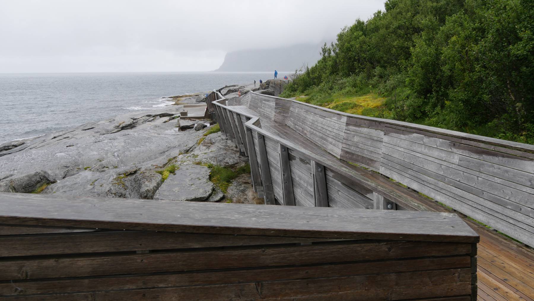 Die Verbindung in den schönen Teil im Norden der Insel, ist leider wegen Bauarbeiten gesperrt. So müssen wir aussen herum und fahren ein paar schöne Ausblicke und auch kuriose Besonderheiten von Senja an. Zum Abschluß machen wir noch eine kleine Wanderung am Ende der Straße in Mefjordvaer.