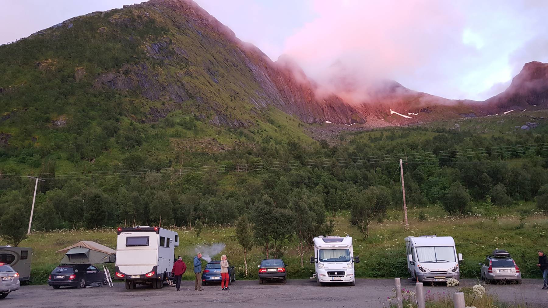 Unser Stellplatz in der Nähe der Fähre Richtung Senja - gut besucht