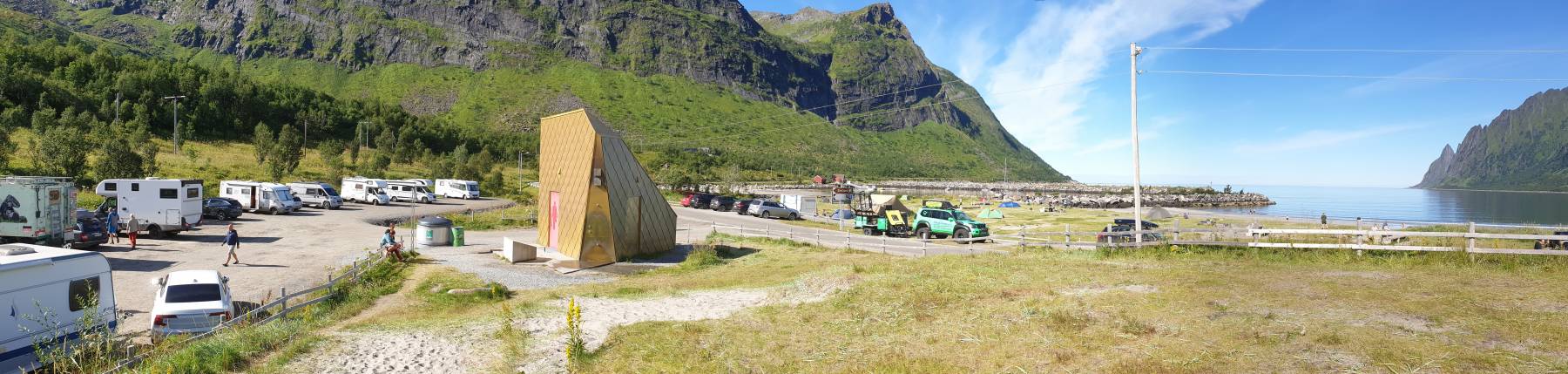 Unser Stellplatz in der Nähe der Fähre Richtung Senja - gut besucht