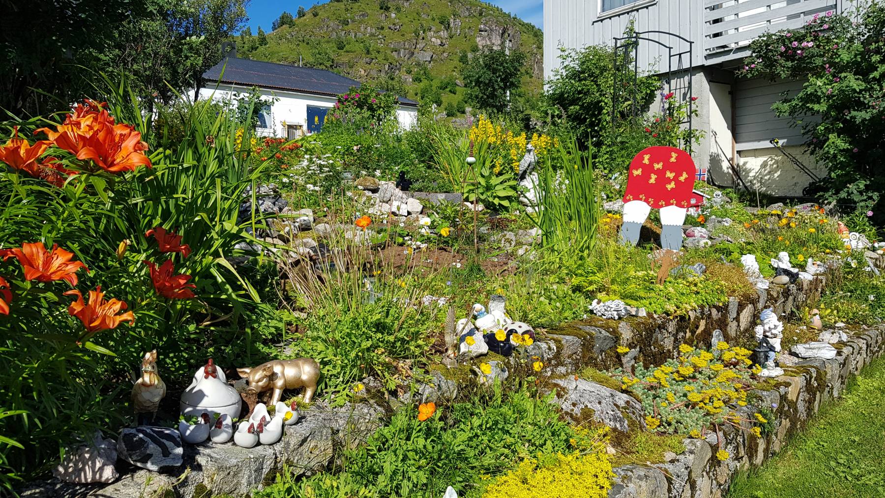 Husøy ist der erste Ort auf der Insel, der uns direkt positiv überrascht. Es gibt sogar einen Stellplatz unten im Hafen, für € 20/Nacht. Für einen einfachen Parkplatz finden wir das zu teuer und finden einen etwas seltsamen Platz für die Nacht, allerdings mit grandioser Aussicht. Wir stehen am Straßenrand, einer nicht stark befahrenen Straße, unmittelbar vor der Einfahrt zum Tunnel. Am kommenden Tag gehen wir 20 km entfernt, auf den Hesten mit Blick auf den Berg Segla. Eine sehr anstrengende Wanderung mit 430 Höhenmetern mit grandiosem Ausblick auf den Berg Segla und die Fjorde der Insel. Der Platz am Tunnel hat uns so gut gefallen, dass wir wieder zurück sind. Dieses Mal steigern wir unser „Camping am Tunnel“ und grillen alles was wir so haben. Die vorbeifahrenden Einheimischen grüßen nett.