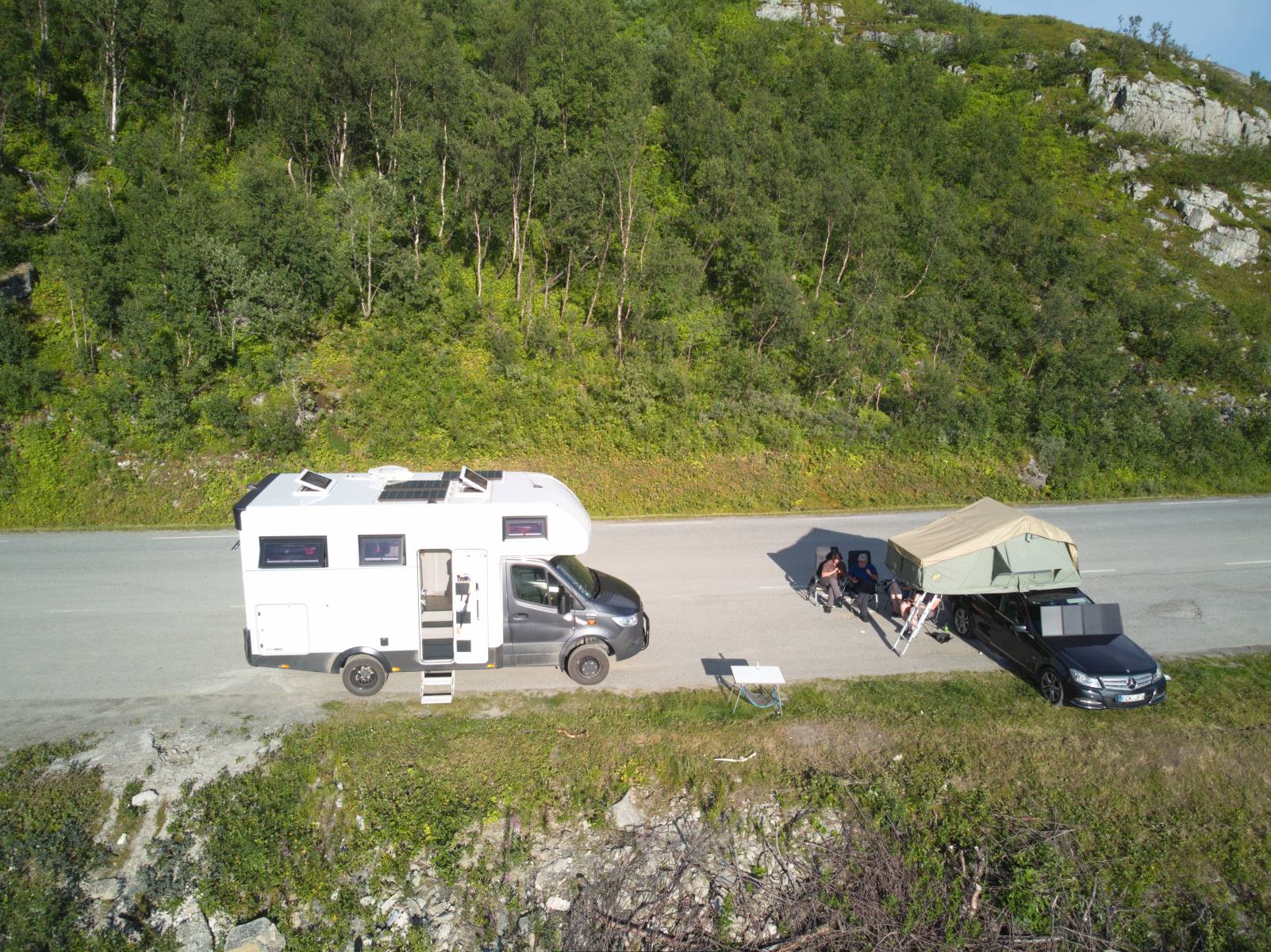 Unser Stellplatz in der Nähe der Fähre Richtung Senja - gut besucht