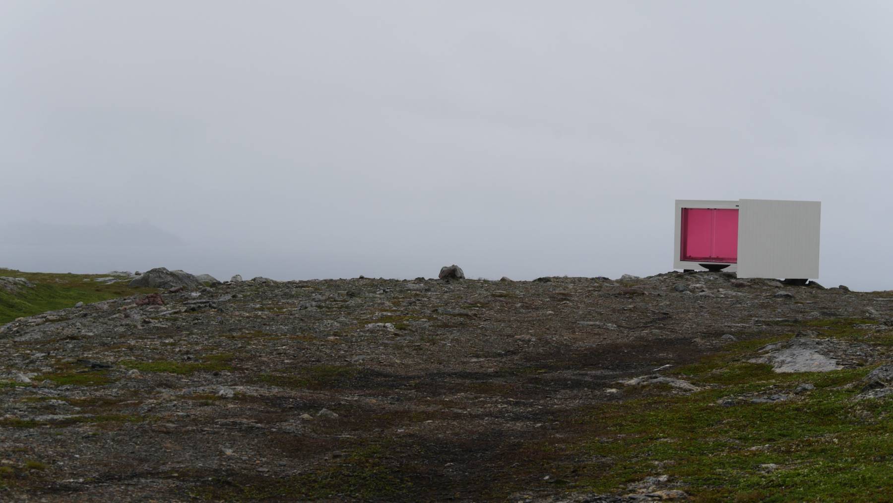 Ein 360° Foto von Vadso: Direkt vorne sind die alten deutschen Schützengräben, in der Ferne dahinter ist Russland. Vadsø als Ort ist im Hintergrund zu erkennen und der große rote Mast ist der berühmte Luftschiff-Ankermast. Nach unten sieht man zwei Touristen 😎😂.