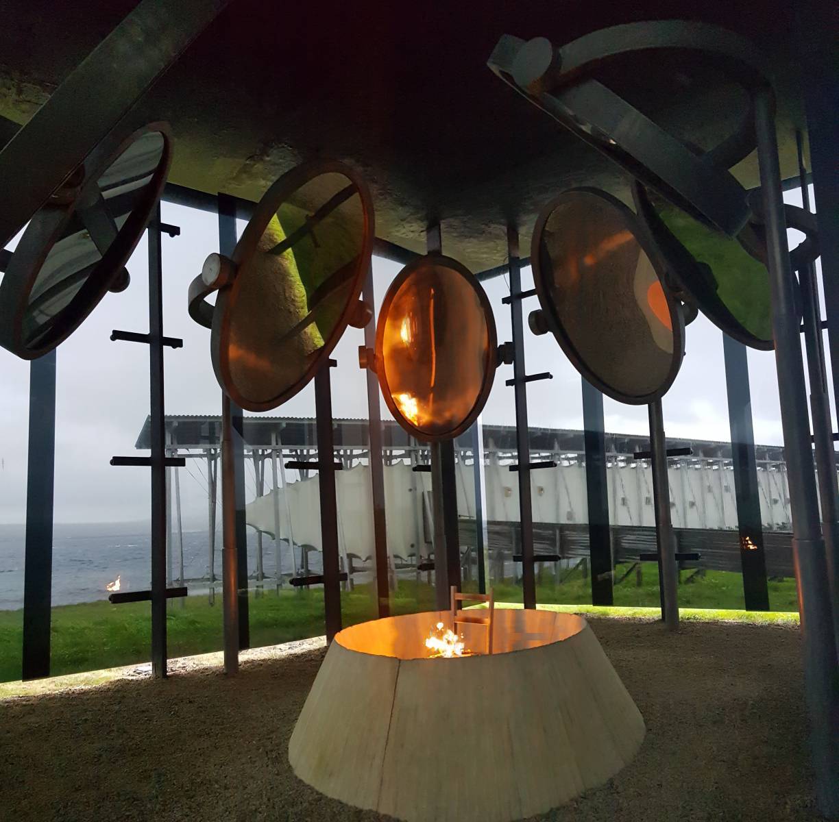 Entlang der faszinierenden Küste mit tollen Sandstränden geht es noch 40 km weiter nach Vardø, nur durch einen 3km langen Tunnel zu erreichen. Die Festung aus dem 14. Jahrhundert – erbaut zum Schutz vor russischen Angriffen – war bisher hier immer unser Ziel. Im Jahr 2011 wurde aber eine Gedenkhalle zu Ehren der Opfer, der hier im 17. Jahrhundert verbreiteten Hexenverbrennung, errichtet. Das ganze Ensemble mit Flammenhaus beeindruckt uns stark.