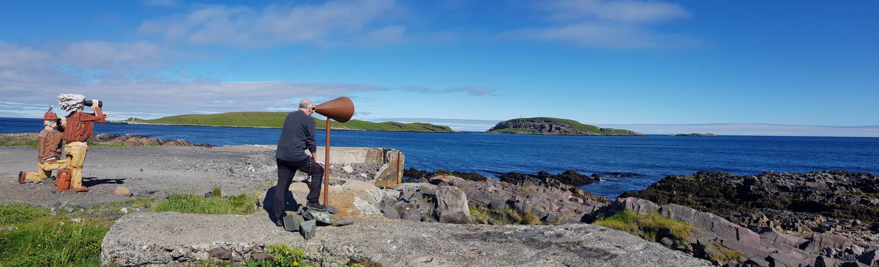 Wir gehen ein wenig in jede Richtung und auch in den Ort. Im Hafenbecken sehen wir eine Robbe, die aber zu schnell wieder weg ist. Der 360° Rundumblick gibt einen kleinen Überblick über den ehemaligen Fischerort.