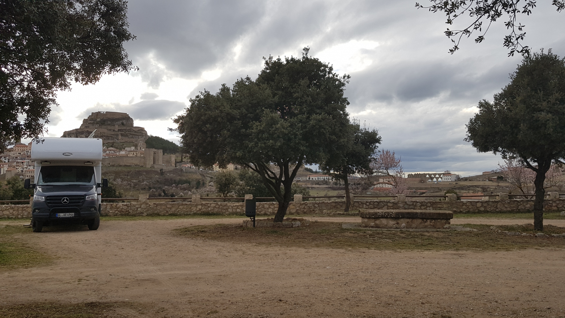 Wir entscheiden uns, die Nacht auf dem Parkplatz zu bleiben. Es gibt nur ein Schild auf spanisch, welches das Parken nur zwischen 10 und 20 Uhr erlaubt. Es stehen zwei spanische Mobile da und wir lesen in der App, dass dort in den letzten Tagen meist zwanzig Fahrzeuge stehen – sie werden offensichtlich geduldet. Es werden über die Nacht insgesamt 8.