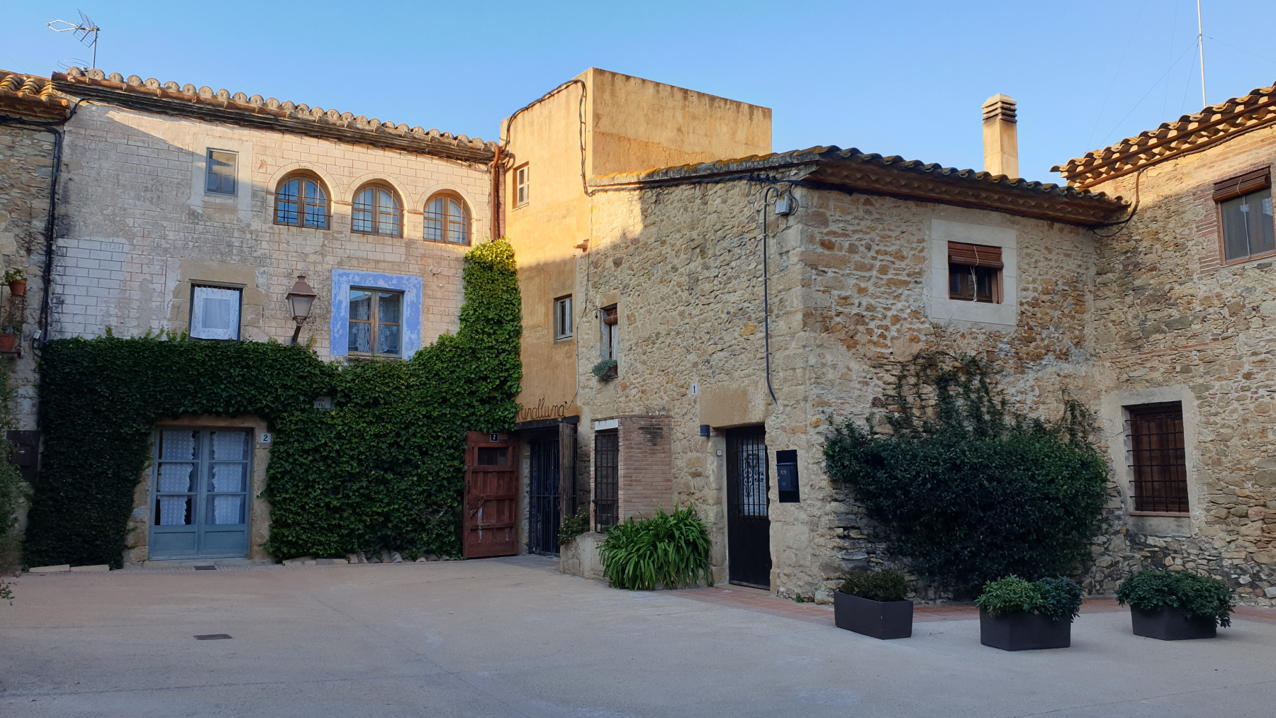 Jetzt nehmen wir uns die Costa Brava vor, mal wieder an die Küste. Das ist aber gar nicht so einfach. Weder unser Navi, noch google geben uns eine Strecke an der Küste vor. Wie wir sehen, scheinen Teile der Strecke entweder Baustelle oder anders beschränkt zu sein. Den ganzen Morgen hat es geregnet, irgendwie haben wir jetzt auch keine Lust mehr auf die zugebaute Küste. So fahren wir ins Hinterland nach Romanya de la Selva, dort gibt es wieder vorzeitliche Ausgrabungen. Nach einer sehr schönen kleinen Wanderung – bei schönstem Wetter – entscheiden wir uns nicht dort zu bleiben, sondern weiter nach Peratallada zu fahren, mit offiziellem kostenlosen Stellplatz. Er liegt neben einer mittelalterlichen Stadt. Bei schönem Abendlicht gehen wir in den kleinen Ort und staunen wie attraktiv er ist. Er scheint zudem eine große Anziehungskraft auf internationales Publikum zu haben, sehr viele Restaurants locken mit unterschiedlichsten, teilweise gehobenen und mehrsprachigen Karten.