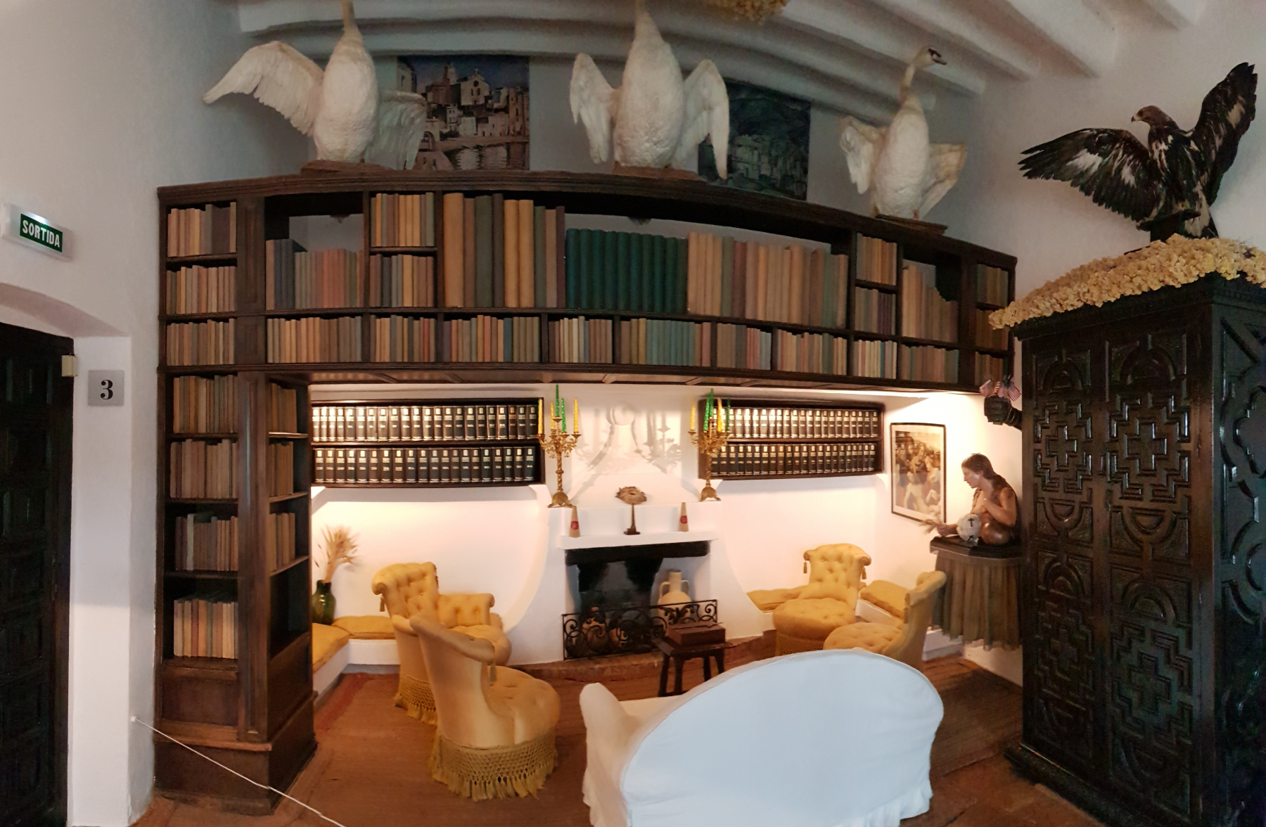 Das Dali-Museum in Figueras haben wir schon mal besucht. Das Wohnhaus des 1989 verstorbenen Künstlers, der unser beider Jugend mit geprägt hatte, wollen wir uns jetzt angucken. Dafür geht es in den nördlichsten Zipfel der Costa Brava nach Portlligat. An unzähligen Womo-Verbotsschildern – Park- und Fahrverbote – in den verschiedensten Orten vorbeifahrend, landen wir in dem kleinen Fischerort. Wir lesen, dass ein Zutritt nur nach vorheriger Reservierung möglich ist und nur in 6er Gruppen. Wir gehen trotzdem hin, zahlen € 14 pro Person und erfahren, dass es in 2 Minuten los geht und wir den Foto-Rucksack gegenüber einschließen müssen. Fotografieren dürfen wir. Also alles super!