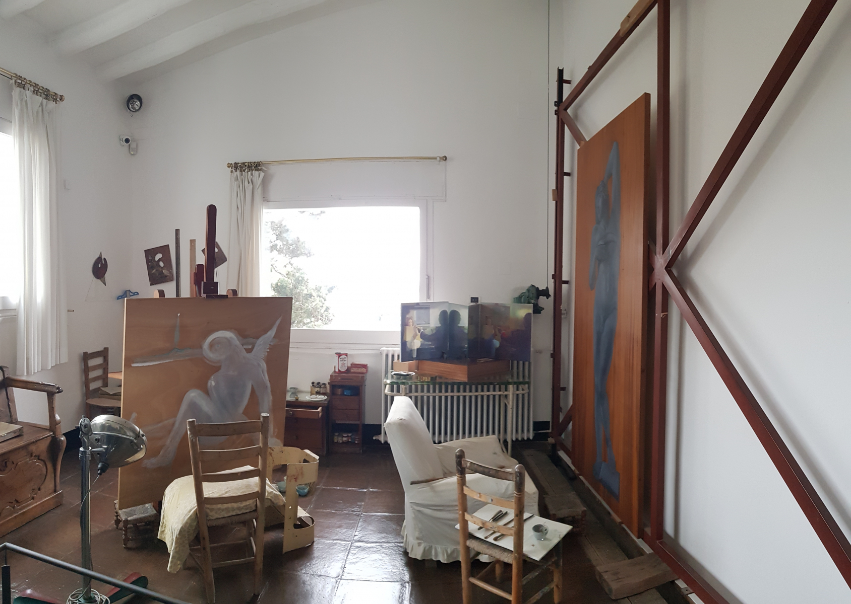 Das Dali-Museum in Figueras haben wir schon mal besucht. Das Wohnhaus des 1989 verstorbenen Künstlers, der unser beider Jugend mit geprägt hatte, wollen wir uns jetzt angucken. Dafür geht es in den nördlichsten Zipfel der Costa Brava nach Portlligat. An unzähligen Womo-Verbotsschildern – Park- und Fahrverbote – in den verschiedensten Orten vorbeifahrend, landen wir in dem kleinen Fischerort. Wir lesen, dass ein Zutritt nur nach vorheriger Reservierung möglich ist und nur in 6er Gruppen. Wir gehen trotzdem hin, zahlen € 14 pro Person und erfahren, dass es in 2 Minuten los geht und wir den Foto-Rucksack gegenüber einschließen müssen. Fotografieren dürfen wir. Also alles super!
