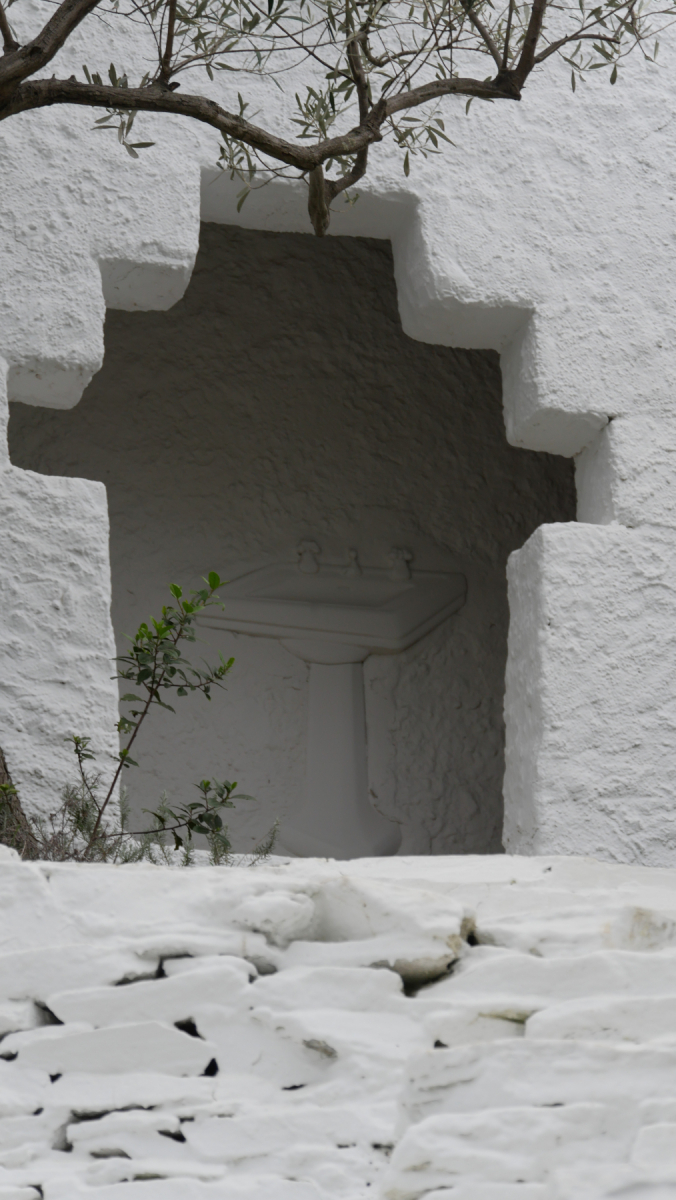 Das Dali-Museum in Figueras haben wir schon mal besucht. Das Wohnhaus des 1989 verstorbenen Künstlers, der unser beider Jugend mit geprägt hatte, wollen wir uns jetzt angucken. Dafür geht es in den nördlichsten Zipfel der Costa Brava nach Portlligat. An unzähligen Womo-Verbotsschildern – Park- und Fahrverbote – in den verschiedensten Orten vorbeifahrend, landen wir in dem kleinen Fischerort. Wir lesen, dass ein Zutritt nur nach vorheriger Reservierung möglich ist und nur in 6er Gruppen. Wir gehen trotzdem hin, zahlen € 14 pro Person und erfahren, dass es in 2 Minuten los geht und wir den Foto-Rucksack gegenüber einschließen müssen. Fotografieren dürfen wir. Also alles super!