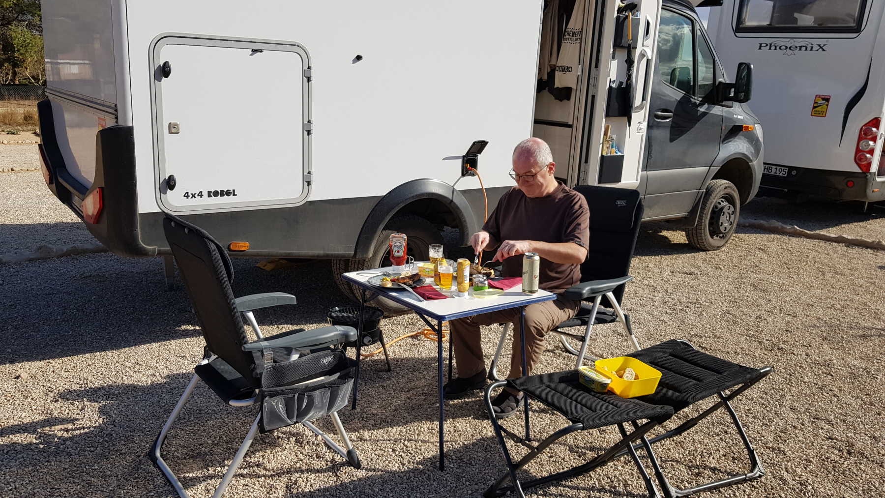 Dienstag ist es mittlerweile und wir stehen immer noch hier. Wir waren viel spazieren, haben einiges geräumt und ein paar Mails geschrieben – alle um das Fahrzeug rum. Wir planen noch ein paar Veränderungen. Heute ist Markt und wir kaufen Orangen zum Pressen – 70 ct/kg und anderes, alles extrem preiswert und sehr gut. Von weitem sehen wir die Guardia Civil Richtung unseres Stellplatzes.