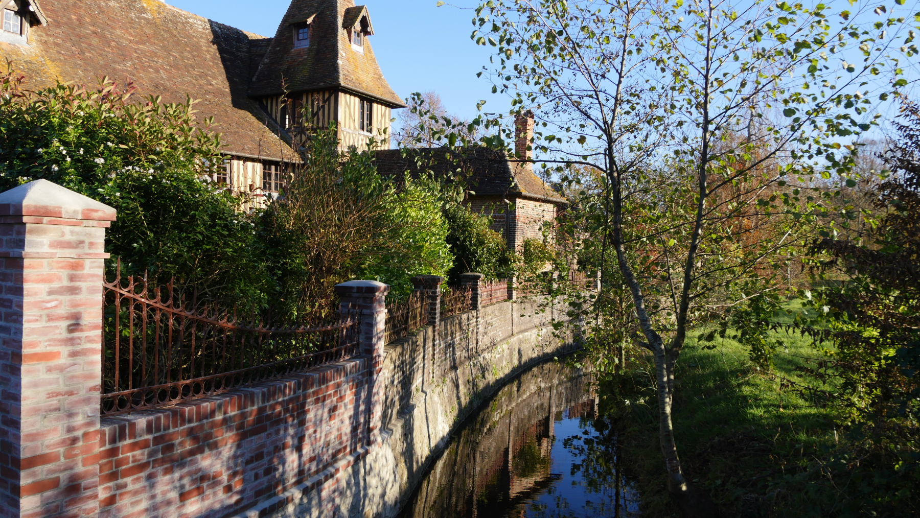 Es handelt sich hier um eine bilderbuchartige Landschaft mit normannischen Fachwerkhäusern und vielen knorrigen Apfelbäumen. Die vielen Wallhecken – hier heißen sie Bocage – sind keltischen Ursprungs und erinnern uns irgendwie an Cornwall. Die Straßen wirken so auch schnell enger.