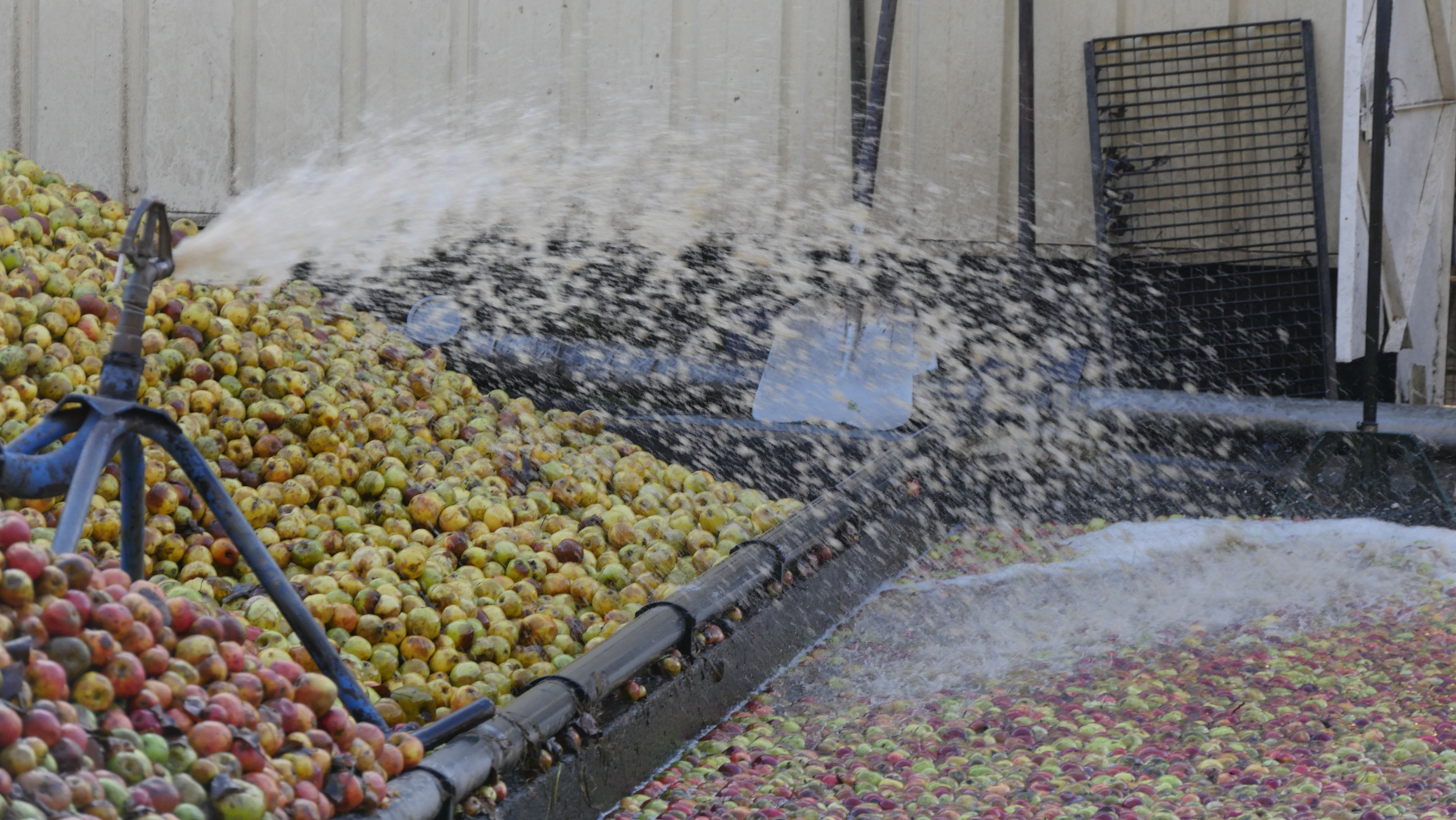 Nach Käse kommt wieder Cidre bzw. Calvados. So fahren wir einfach mal Richtung eines Schildes, dass zu einem Stellplatz führen soll. Die Straße wird immer enger, es geht bergauf zwischen Apfelbäumen und Kühen und plötzlich stehen wir vor dem Haus des Cidre Produzenten Didier Gautard. Wir parken vor einem Seil, welches die Zufahrt zu dem offensichtlichen Stellplatz blockiert. Wir wissen nicht direkt ob wir willkommen sind und sehen hinten einen Gabelstapler. Der Fahrer winkt uns, springt vom Stapler und legt das Seil beiseite.