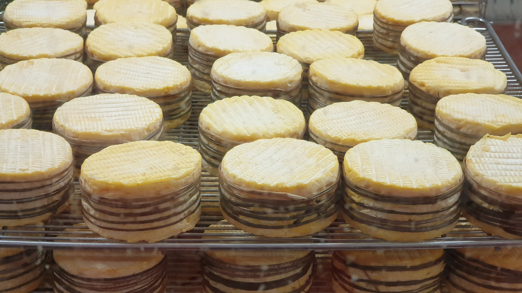 Was aber einfach klasse ist und sich lohnt. Nach kurzer Orientierung gehen wir nach rechts und gehen durch die kostenlose Ausstellung und kommen zur LiveProduktion. Gut, wir sind etwas spät dran, die machen die Gerätschaften für die Herstellung gerade sauber. Immerhin sehen wir noch etwas vom Verpacken und das für Livarot typische umbinden des Riedgrases.