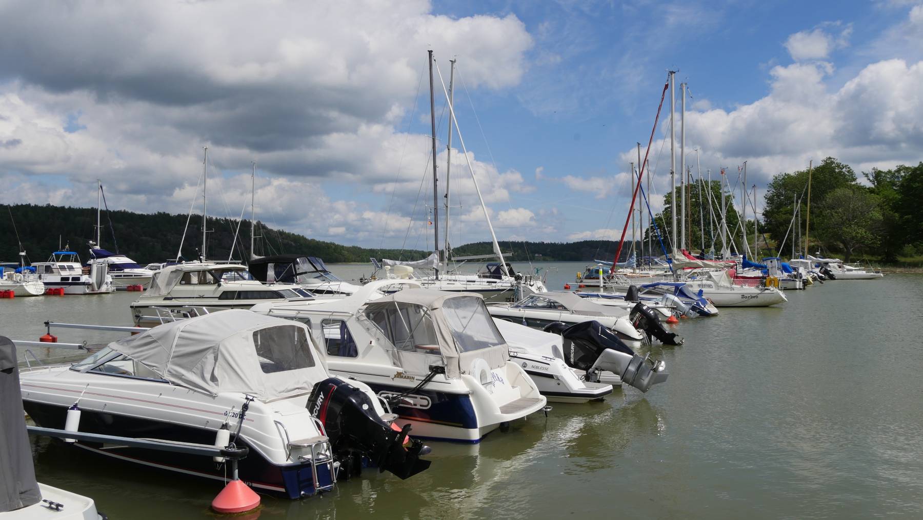 Das Thema Wäsche waschen – zum ersten Mal in Schweden – haben wir uns auch fest vorgenommen. Wie bereits erwähnt, müssen wir dafür auf einen Campingplatz. In Valdemarsvik suchen wir uns einen raus, bei dem wir auf einen Übernachtungspreis von € 20,–/Nacht kommen. Allerdings nur mit dem ACSI Rabattsystem für die Nebensaison, die hier noch bis zum 22.6. gilt. Wir fahren auf den uns zugewiesenen Platz und erfahren, dass die Waschmaschine defekt ist. Wir machen uns auf, die Shirts und Hemden mit der Hand zu waschen – „back to the roots“. Sehr ärgerlich, aber so ist es halt. Wir überlegen uns auf unserem Abendspaziergang wo wir jetzt hin sollen. Schon wieder auf einen Campingplatz oder nach Stockholm? Dort gibt es einen Waschsalon, wie wir lesen der einzige in Schweden, der Selbstwäsche ermöglicht – für € 25,– für eine 5kg Maschine bei 60 Grad. Und da sehen wir im Servicehaus im Hafen drei Waschmaschinen durch die Fenster. Man soll sich Waschzeiten im Internet buchen, steht da und erhält dann den Zugangscode oder man geht zur Touristeninfo – ist natürlich jetzt zu. Im Internet eine Waschmaschine in Valdemarsvik zu buchen gelingt uns nicht. Also am nächsten Morgen auf dem Weg uns lätschige Brötchen fürs Frühstück zu holen, noch kurz zur Touristeninfo. Und wer sagt es denn: Für knapp € 3,– können wir Waschmaschinen und Trockner den ganzen Tag lang nutzen. Der einzige Haken – das habe ich noch nicht erwähnt – das sind von unserem Stellplatz 2,4 km zu Fuß. Wir sind schon der Meinung, dass wir dafür bestraft werden müssen, dass wir den Campingplatz für zwei Tage im Voraus bezahlt haben. So packen wir, nach dem Verspeisen der wiederholt nicht leckeren Brötchen, zwei Rucksäcke und eine Tasche und marschieren bei 23 Grad los. Zum Glück ist keiner da und wir können alle drei Maschinen gleichzeitig nutzen, natürlich danach auch alle drei Trockner. Wir sind glücklich 😊.