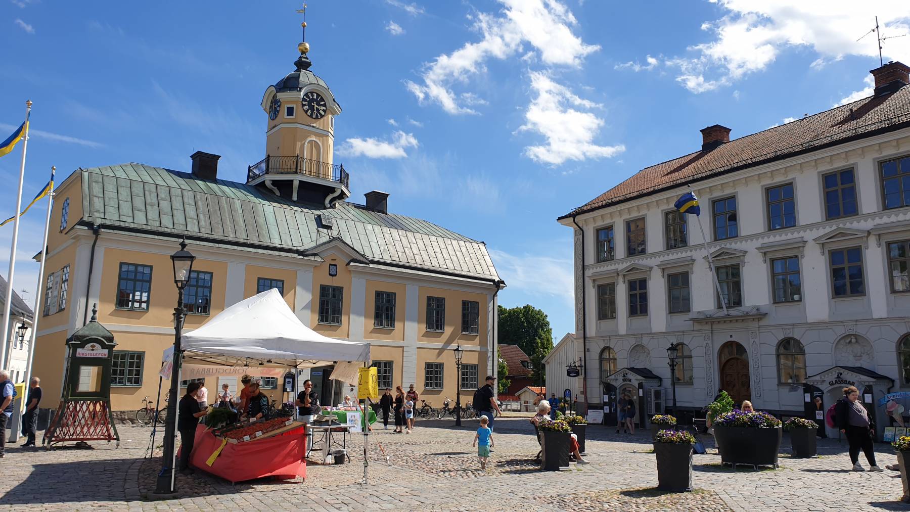 Das Thema Wäsche waschen – zum ersten Mal in Schweden – haben wir uns auch fest vorgenommen. Wie bereits erwähnt, müssen wir dafür auf einen Campingplatz. In Valdemarsvik suchen wir uns einen raus, bei dem wir auf einen Übernachtungspreis von € 20,–/Nacht kommen. Allerdings nur mit dem ACSI Rabattsystem für die Nebensaison, die hier noch bis zum 22.6. gilt. Wir fahren auf den uns zugewiesenen Platz und erfahren, dass die Waschmaschine defekt ist. Wir machen uns auf, die Shirts und Hemden mit der Hand zu waschen – „back to the roots“. Sehr ärgerlich, aber so ist es halt. Wir überlegen uns auf unserem Abendspaziergang wo wir jetzt hin sollen. Schon wieder auf einen Campingplatz oder nach Stockholm? Dort gibt es einen Waschsalon, wie wir lesen der einzige in Schweden, der Selbstwäsche ermöglicht – für € 25,– für eine 5kg Maschine bei 60 Grad. Und da sehen wir im Servicehaus im Hafen drei Waschmaschinen durch die Fenster. Man soll sich Waschzeiten im Internet buchen, steht da und erhält dann den Zugangscode oder man geht zur Touristeninfo – ist natürlich jetzt zu. Im Internet eine Waschmaschine in Valdemarsvik zu buchen gelingt uns nicht. Also am nächsten Morgen auf dem Weg uns lätschige Brötchen fürs Frühstück zu holen, noch kurz zur Touristeninfo. Und wer sagt es denn: Für knapp € 3,– können wir Waschmaschinen und Trockner den ganzen Tag lang nutzen. Der einzige Haken – das habe ich noch nicht erwähnt – das sind von unserem Stellplatz 2,4 km zu Fuß. Wir sind schon der Meinung, dass wir dafür bestraft werden müssen, dass wir den Campingplatz für zwei Tage im Voraus bezahlt haben. So packen wir, nach dem Verspeisen der wiederholt nicht leckeren Brötchen, zwei Rucksäcke und eine Tasche und marschieren bei 23 Grad los. Zum Glück ist keiner da und wir können alle drei Maschinen gleichzeitig nutzen, natürlich danach auch alle drei Trockner. Wir sind glücklich 😊.