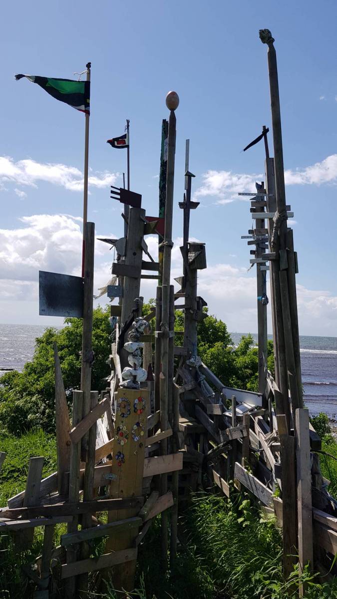 Und wer denkt wir würden in Schweden keine alten Steine finden, der täuscht sich 😜. Auch hier stehen die Runensteine, der Bildstein oder später die Felszeichnungen auf irgendwelcher Privatwiesen. Beim Parken gehört dann ein wenig Frechheit dazu – halt am Straßenrand – wollen ja nicht Campen. Anders bei der Steinsetzung in Kåseberga, hier gibt es nicht nur jede Menge Parkplätze, sondern auch noch mehr Touris. Im kleinen Hafen stehen die Menschen an dem Fischlokal Schlange – wir lieber am Eisstand: einmal Salzkaramel und einmal Blaubeer 😋. Natürlich haben wir auch geräucherten Lachs gekauft – für morgen.
