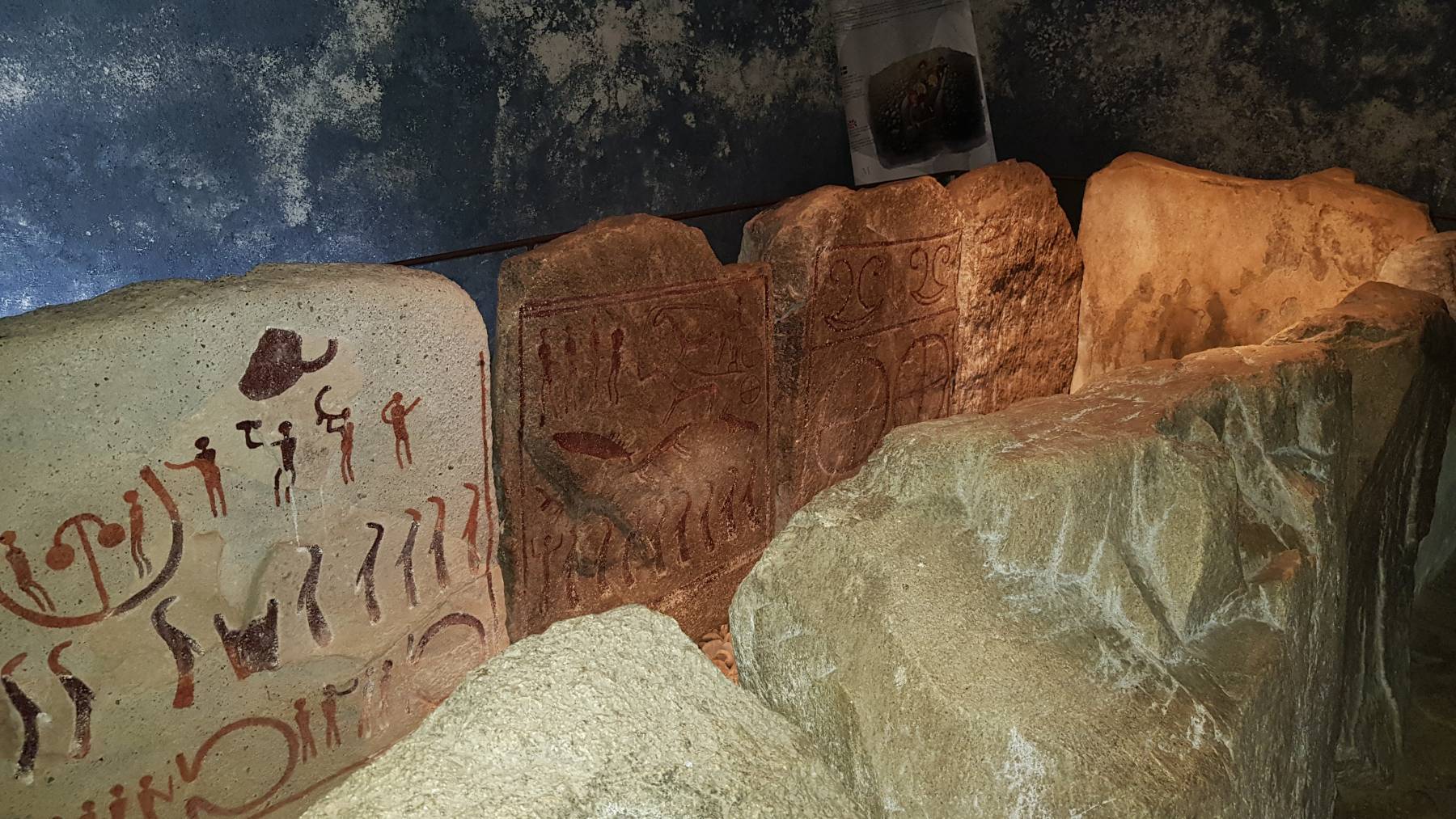 Es besteht aus zehn Steinplatten mit hineingeritzten Zeichnungen