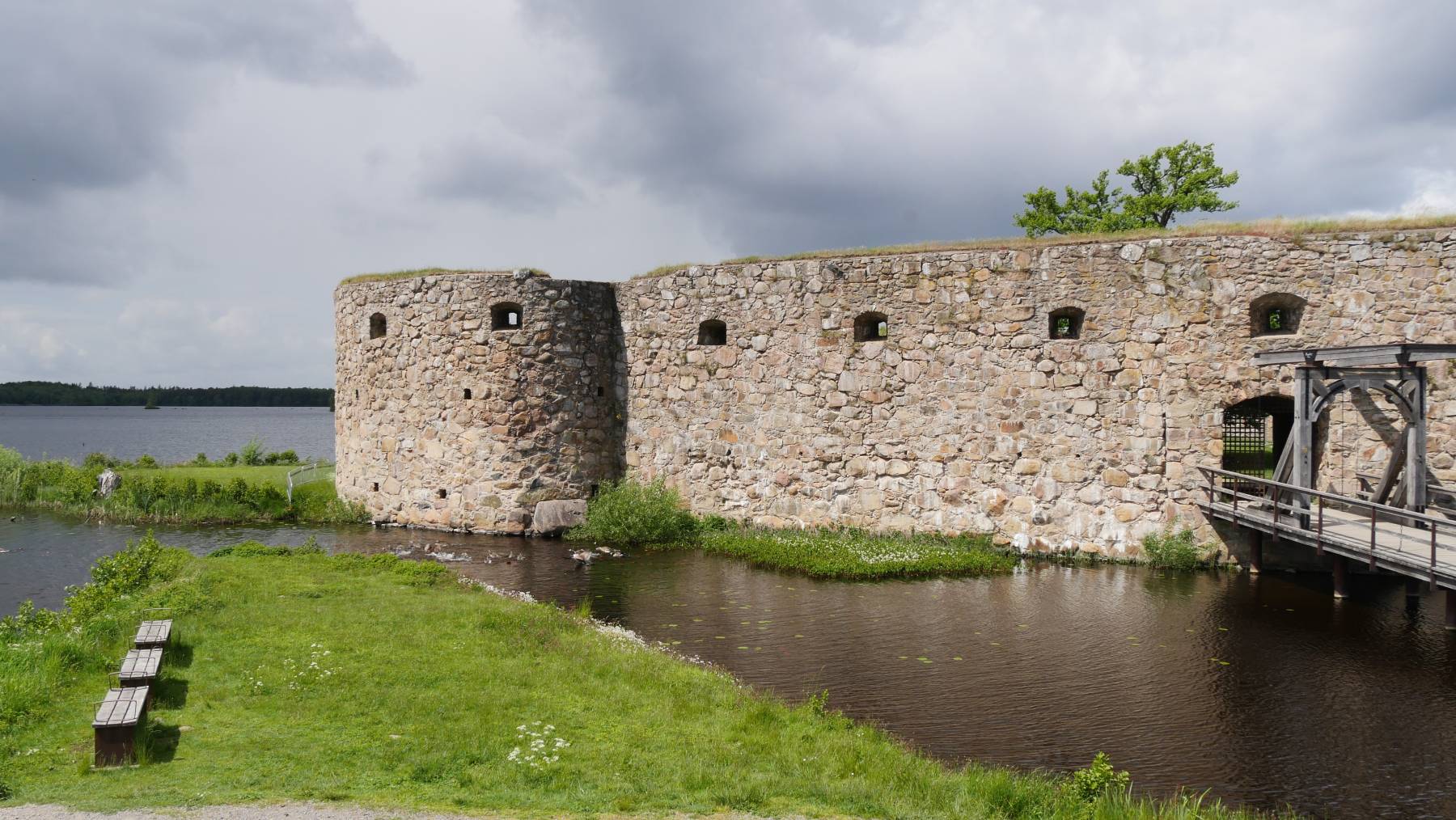 Fahren wir jetzt weiter an der Küste entlang und dann auf die große Insel Öland? Nein. Wir entscheiden uns ins Landesinnere zu fahren. Den Åsnen Nationalpark – Binnenschärengarten mit 100 großen Inseln – und danach den Store Moss Nationalpark – großes Hochmoorgebiet – haben wir uns vorgenommen. Växjö als kleine Stadt liegt auch auf dem Weg. Ein Grund Öland erst nach Pfingsten zu besuchen ist aber auch ein noch ganz anderer: Ein Europatreffen von 10.000 HarleyDavidsonfahrern.