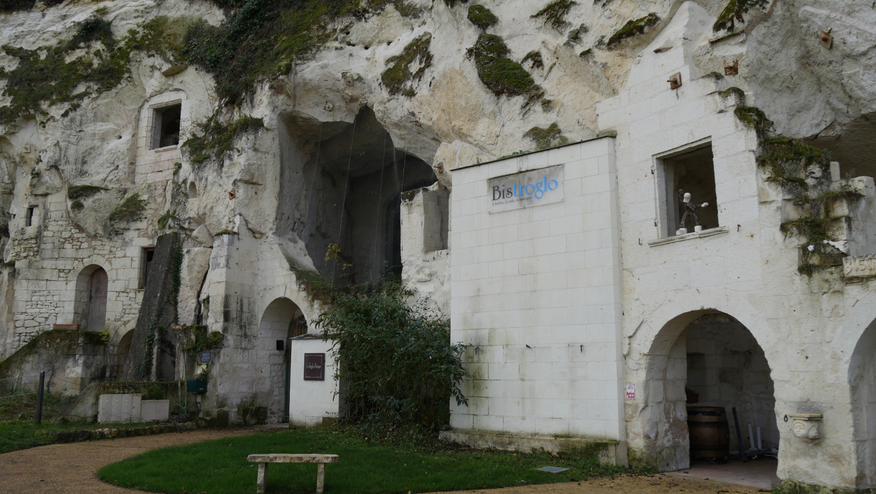 Ein weiterer, richtiger Höhlenwohnort ist das Dorf Orbière, dessen erste Siedlungsspuren bis ins Mittelalter zurückreichen und in dem noch zu Beginn des letzten Jahrhunderts mehrere Familien lebten. In den 70er Jahren übernahm Jacques Warminski , ein in Polen geborener Künstler aus Angers, die damals verlassenen Räumlichkeiten, um in nur fünf Jahren, von 1988 bis 1993, ein monumentales Kunstwerk, die Terrestrial Helix, zu schaffen. Wir haben Glück, keiner da und alles offen.