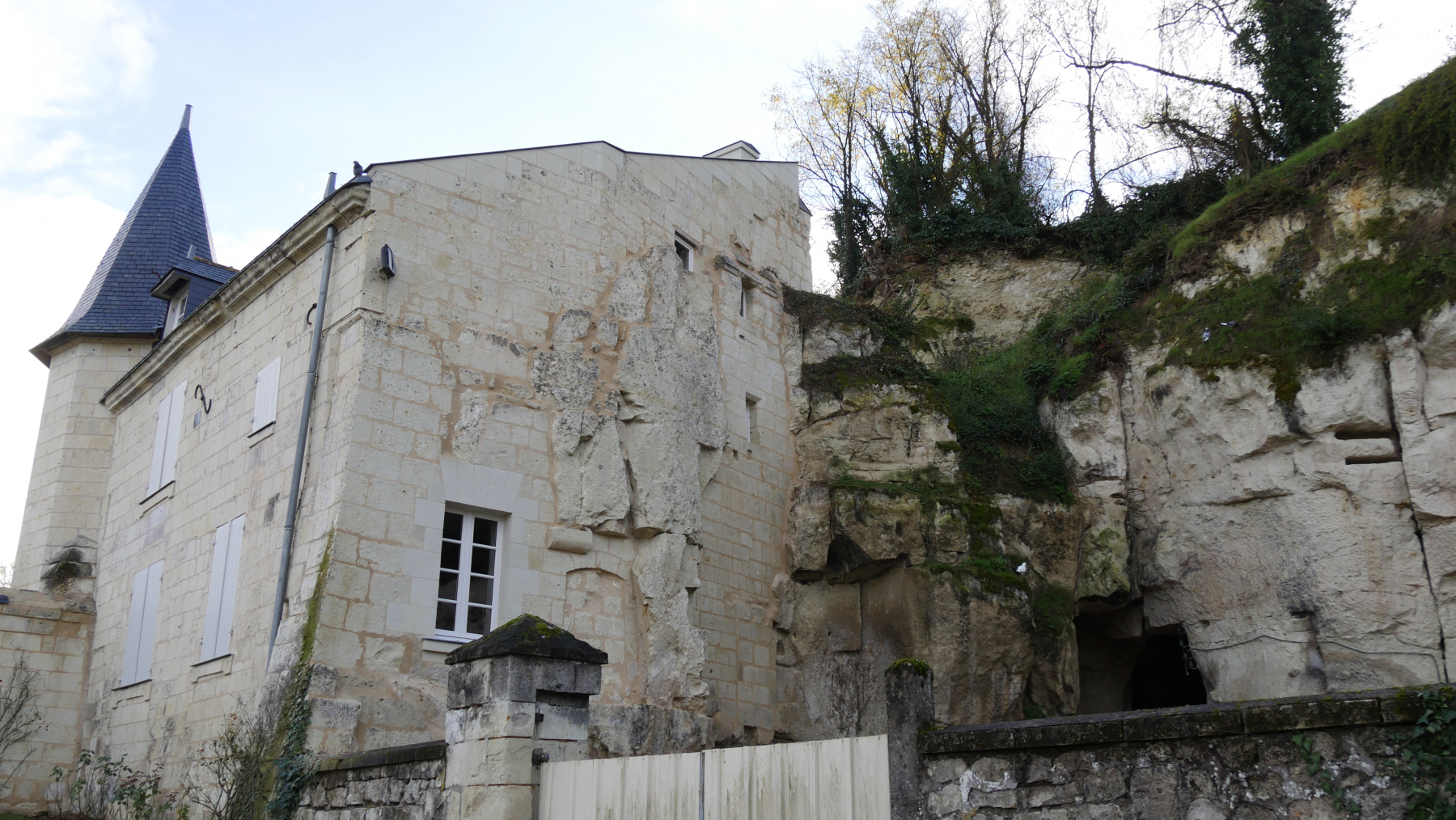 Charakteristisch sind an der Loire auch die Tuffsteinfelsen. Oben Weinberge und Mühlen, unten Höhlenwohnungen, heute offensichtlich von Künstlern genutzt – hier in Turquandt