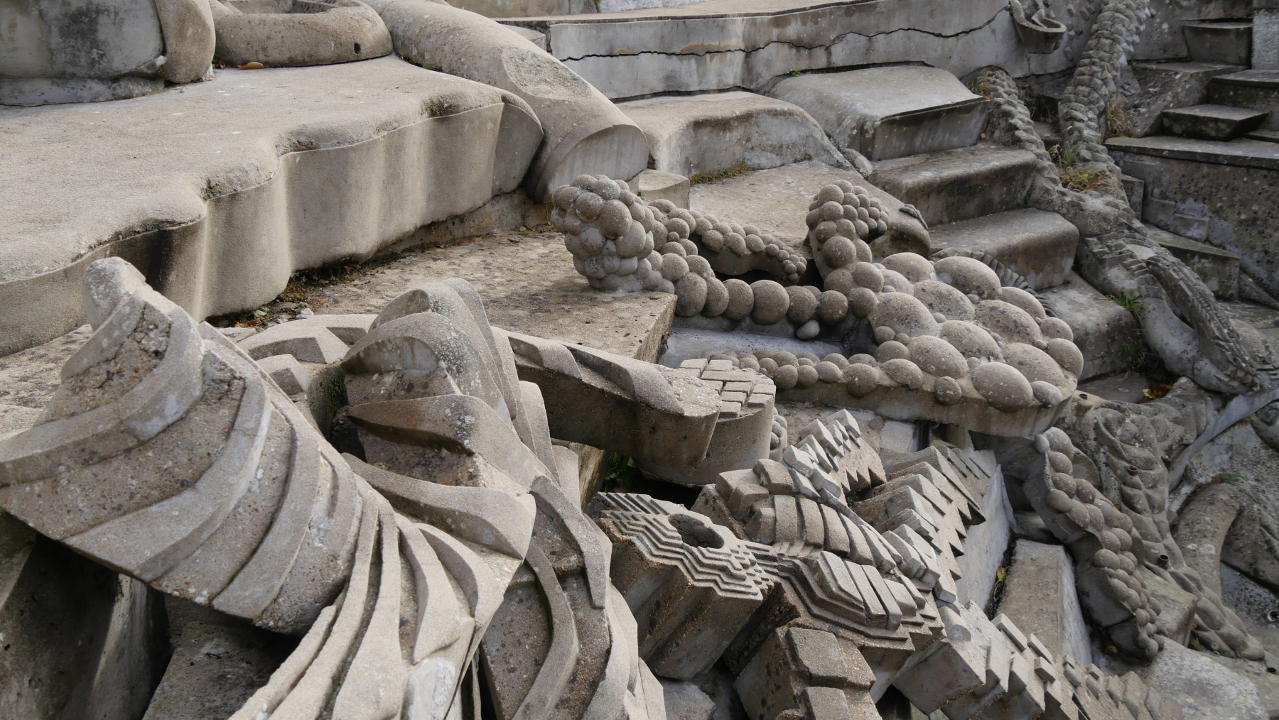 Ein weiterer, richtiger Höhlenwohnort ist das Dorf Orbière, dessen erste Siedlungsspuren bis ins Mittelalter zurückreichen und in dem noch zu Beginn des letzten Jahrhunderts mehrere Familien lebten. In den 70er Jahren übernahm Jacques Warminski , ein in Polen geborener Künstler aus Angers, die damals verlassenen Räumlichkeiten, um in nur fünf Jahren, von 1988 bis 1993, ein monumentales Kunstwerk, die Terrestrial Helix, zu schaffen. Wir haben Glück, keiner da und alles offen.