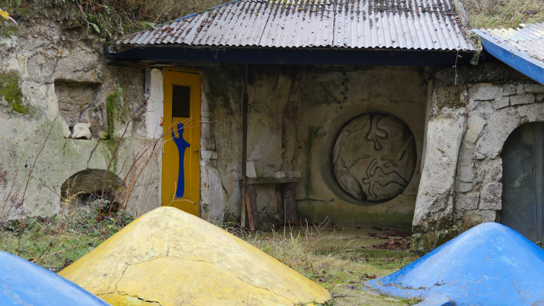 Ein weiterer, richtiger Höhlenwohnort ist das Dorf Orbière, dessen erste Siedlungsspuren bis ins Mittelalter zurückreichen und in dem noch zu Beginn des letzten Jahrhunderts mehrere Familien lebten. In den 70er Jahren übernahm Jacques Warminski , ein in Polen geborener Künstler aus Angers, die damals verlassenen Räumlichkeiten, um in nur fünf Jahren, von 1988 bis 1993, ein monumentales Kunstwerk, die Terrestrial Helix, zu schaffen. Wir haben Glück, keiner da und alles offen.