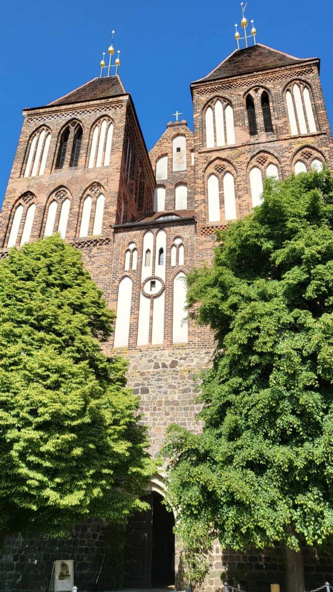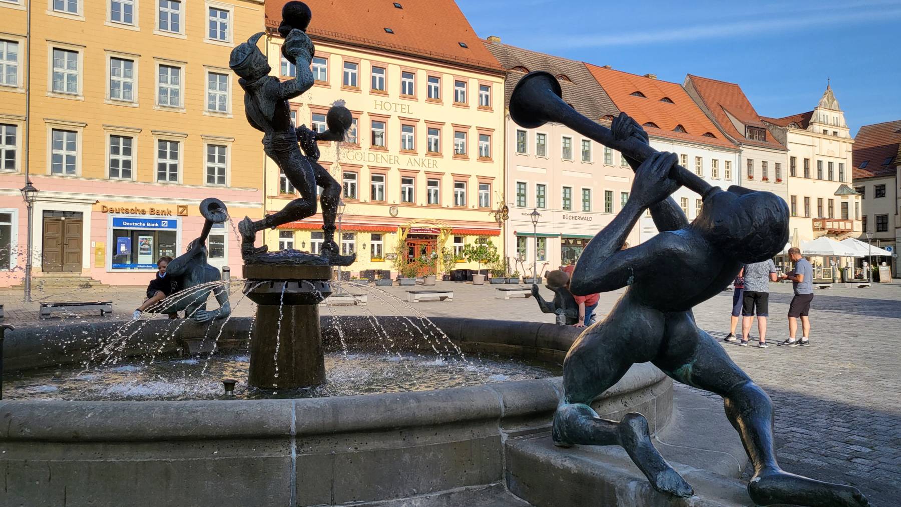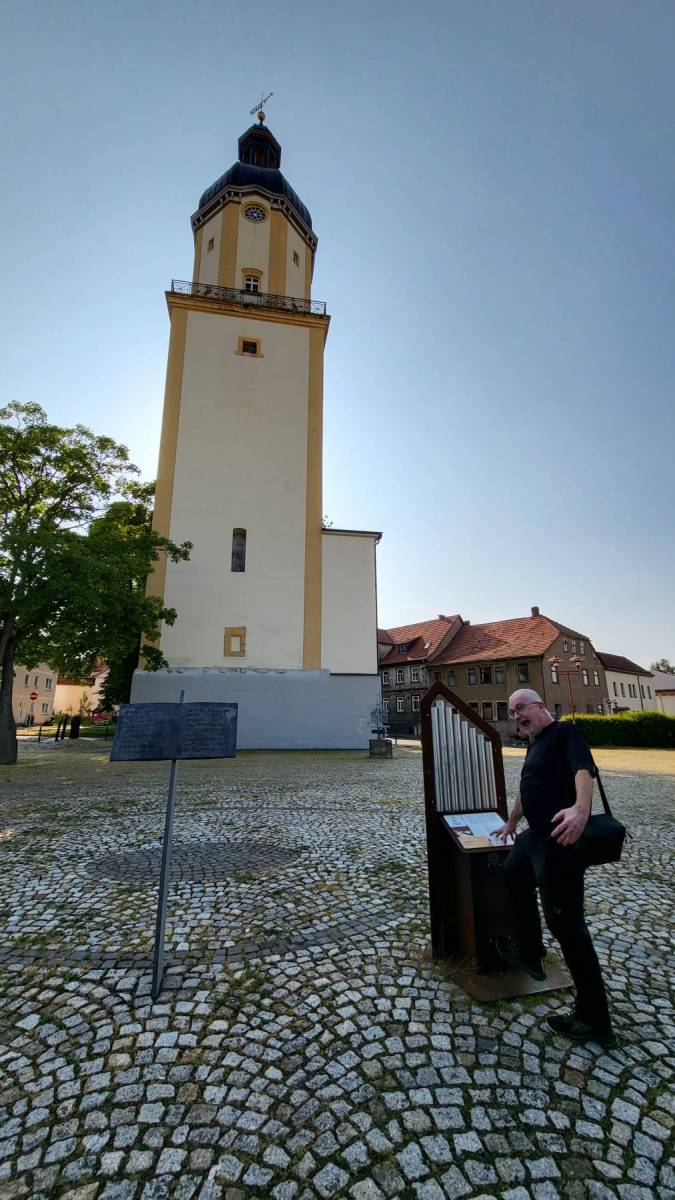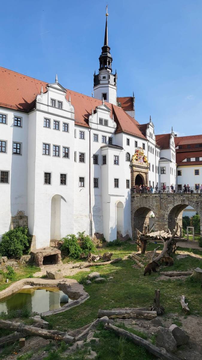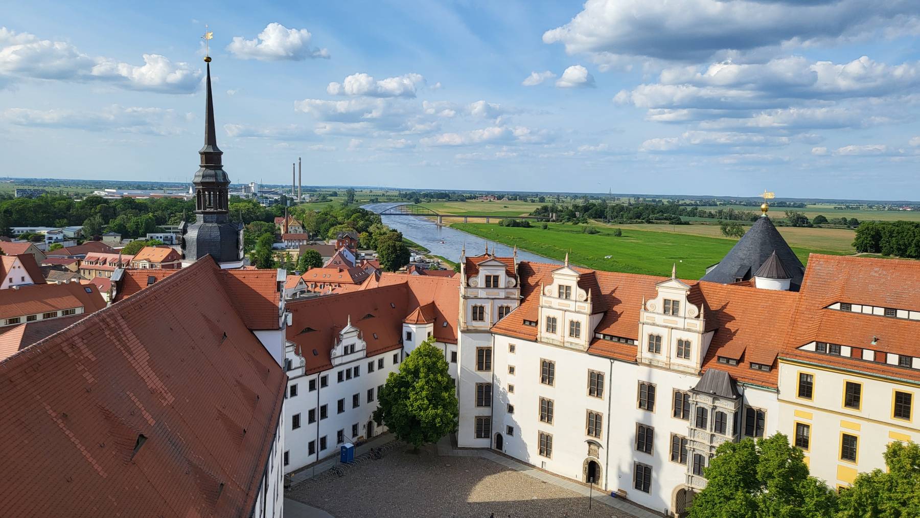 Als nächstes Ziel hatten wir uns Luckau am Rande des Spreewaldes herausgesucht. Und hier direkt eine Antwort auf die Frage: Wie findet ihr eure Ziele. Anette guckt während der Fahrt auf die App Park4night und findet noch vor Luckau einen Platz in Torgau – zum Glück. Ein kleiner historischer Ort, indem sich unter anderem Soldaten aus der Ukraine und den USA 1945 die Hände gaben, als sie das faschistische Deutschland befreiten. An der Elbe gelegen mit schickem Schloss Hartenfels und Landesgartenschaugelände aus 2022.