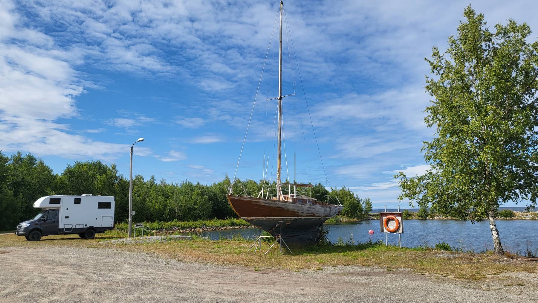 Wir finden an den schönsten Orten tolle Stellplätze. Wenn wir an jedem stoppen würden, kämen wir nicht wirklich weiter. Und auch hier fallen die Finnen auf. Wir stehen in ihren Bootshäfen oder unweit ihrer Häuser und – sie grüßen. Noch besser, sie fragen wie es uns in Finnland gefällt und wünschen einen guten Aufenthalt. Noch ein Beispiel? Wir stehen alleine auf einem großen geschotterten Platz, natürlich mit Meerblick. Es kommen zwei PKW mit großen Wohnwagen und stellen sich – mit Abstand – hinter und vor uns. Wie wir am nächsten Morgen erfahren, besuchen sie die Großeltern, die auf einer der Schären ein Haus haben und übernachten im Wohnwagen. Die erwachsene Tochter spricht uns an – auf Deutsch. Ob wir aus Deutschland kommen, ob es uns gefällt und wo wir bereits waren. Deutsch? Sie würden ja auch schwedisch sprechen und das wäre dem Deutschen ähnlich – aha??! Die Mutter kommt dazu und entschuldigt sich bei uns – auf Deutsch. Sie hätten gestern gestört und wären zu laut gewesen mit ihren Freunden. Ich glaube man konnte mir mein Entsetzen im Gesicht ansehen. Einheimische entschuldigen sich bei Freistehern und wir haben noch nicht einmal vom Lärm etwas mitbekommen. Unglaublich.