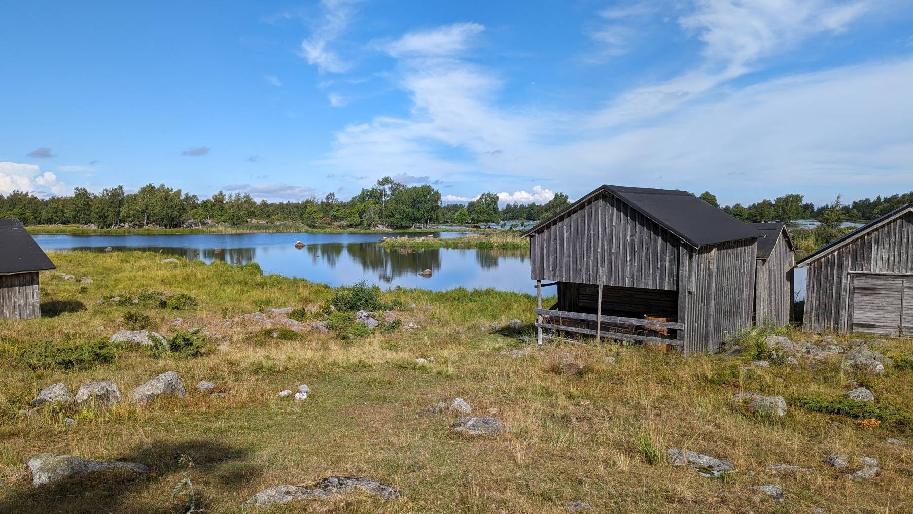 Wir fahren aber immer wieder Stichstraßen in oder über die Schären und besuchen kleine Orte und Fischereihäfen. Uns fällt auf, dass gefühlt jede Schäre mit einem Haus bebaut ist und sehen auch überall hölzerne Anlagestege. Man kann jetzt nicht wirklich von dichter Besiedlung sprechen, es fehlt aber das Gefühl der völlig unberührten Natur. Schön ist die Küste aber allemal anzusehen.