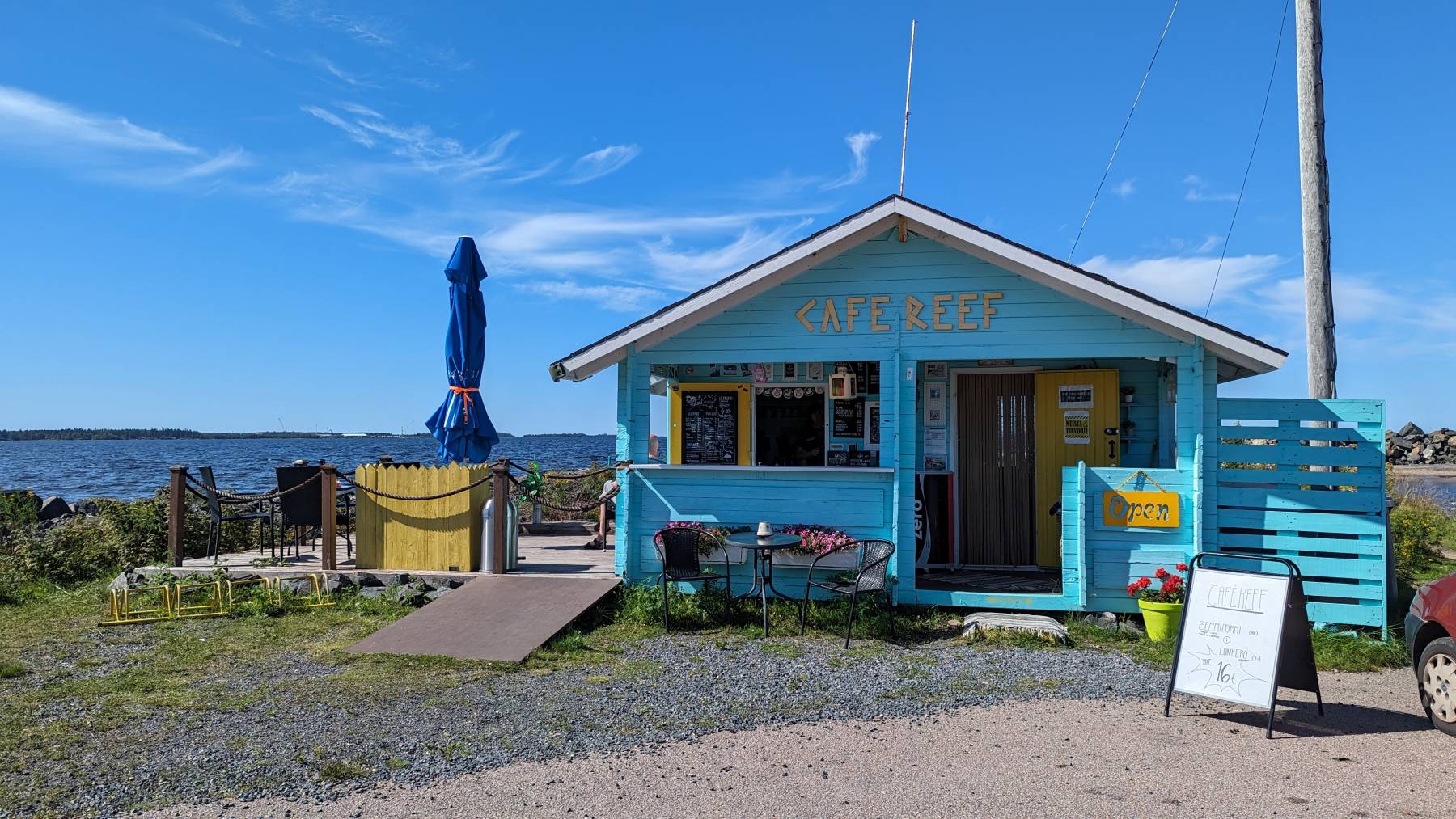Auf der Hauptstraße, an der Küste gen Norden, begegnen wir sehr vielen Wohnmobilen, fast ausnahmslos finnischen. Was uns auffällt, sie grüßen immer – nicht nur zurück – nein grundsätzlich und dann auch Fahrer und Beifahrer. Im Baltikum hat nicht ein einziger einheimischer Mobilist zurückgegrüßt, geschweige denn von sich aus gegrüßt.