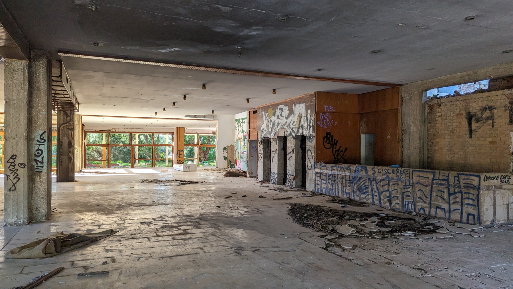 Das ehemalige Luxus-Hotel auf der Halbinsel Peloponnes im Süden Griechenlands wurde in den 1970ern erbaut. Es verfügte über 600 Betten, Bungalows, Sportanlagen, eine Strand-Disco und ein Amphitheater.